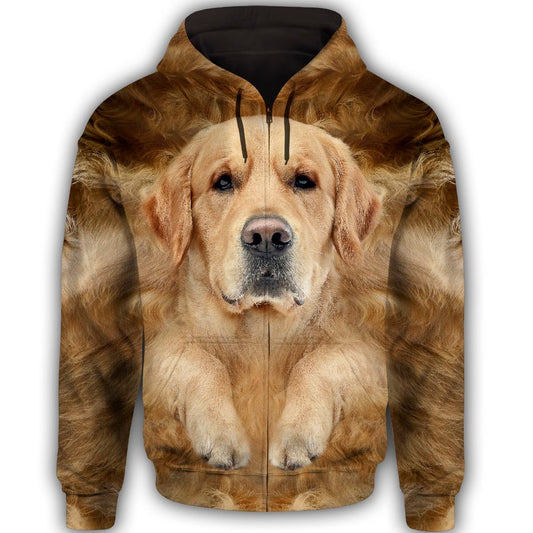 Golden Retriever Cute Dog Face T284 - All Over Print Zip Hoodie unisex womens & mens, couples matching, friends, funny family zip hoodie gifts (plus size available)
