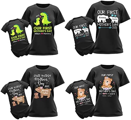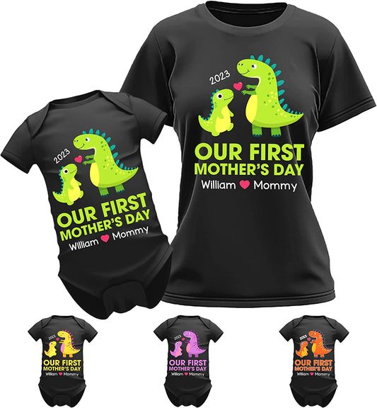 Our 1st Mother's Day Dinosaur Custom Art Matching Outfit