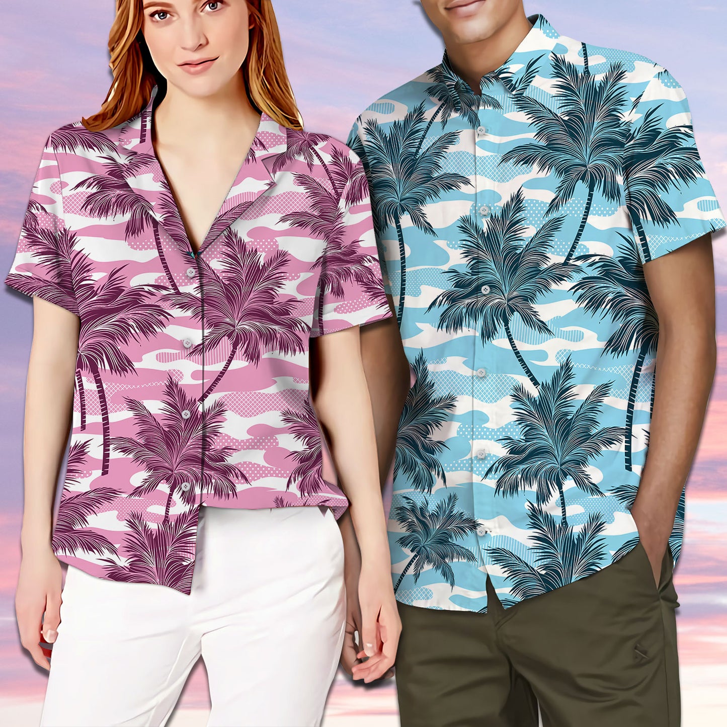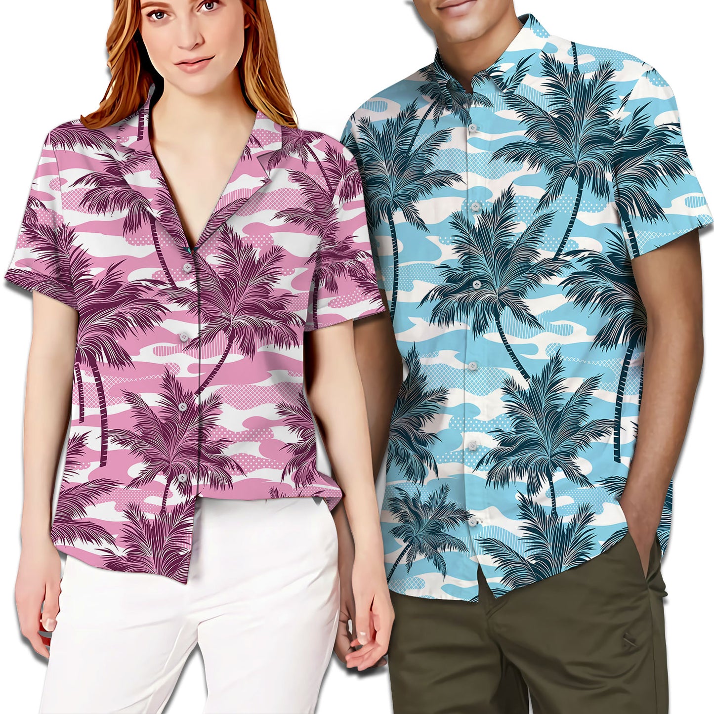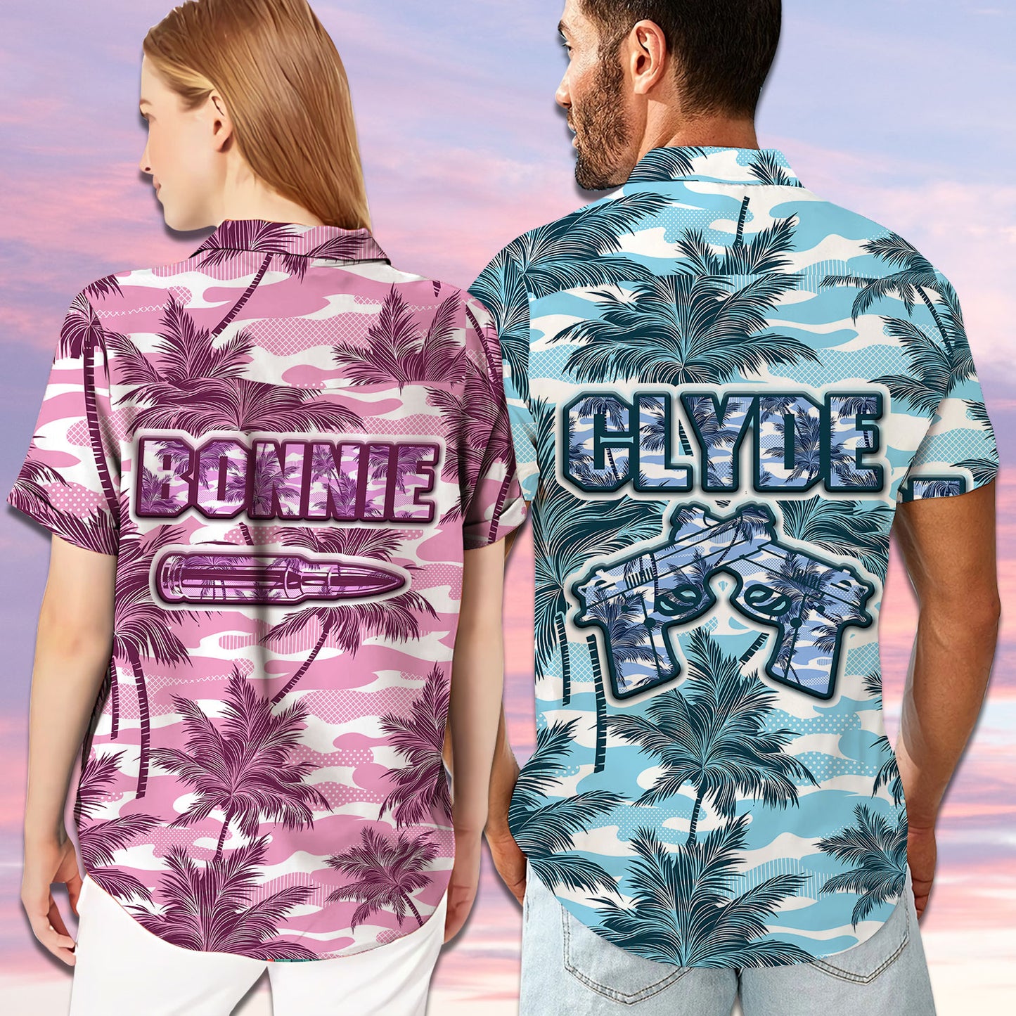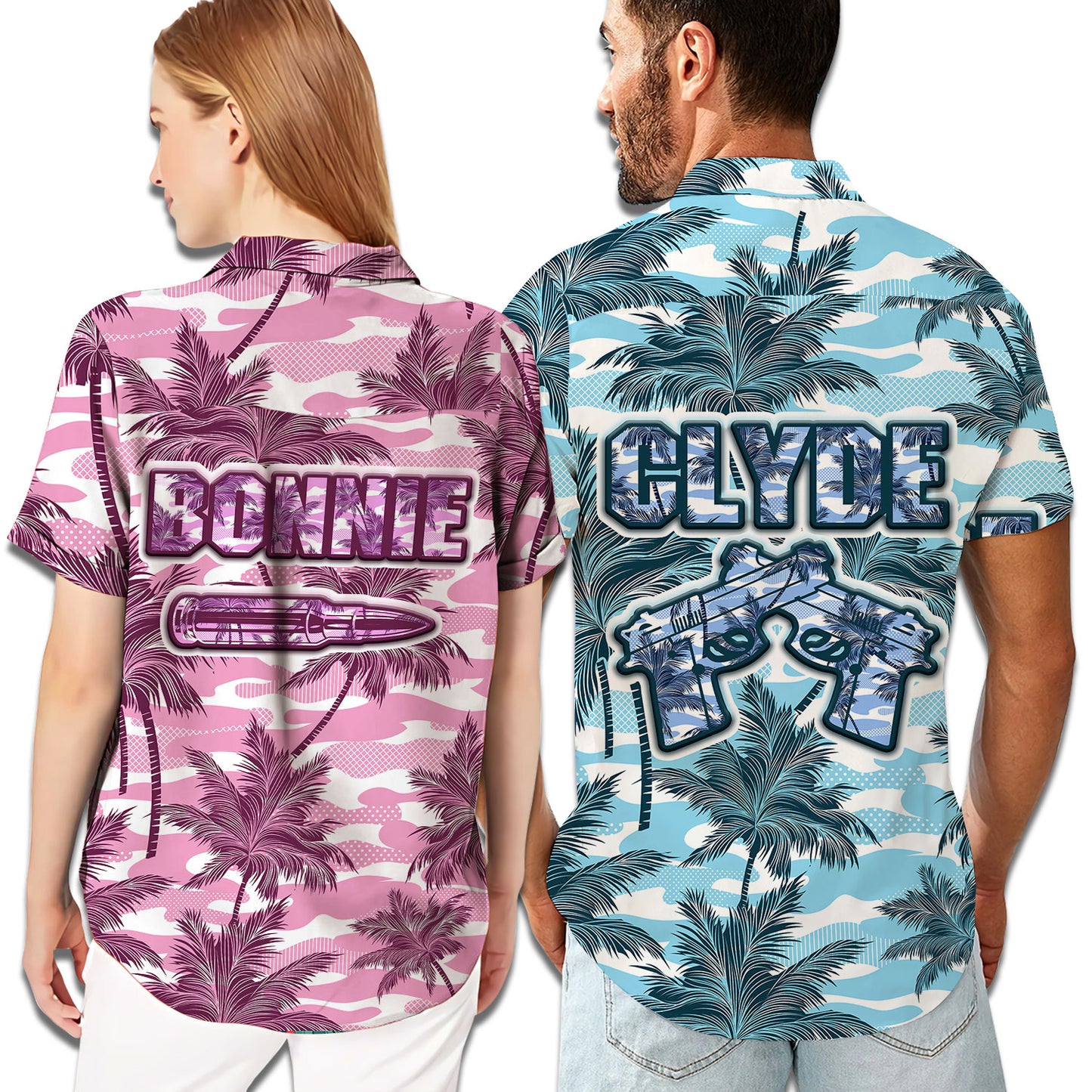 Clyde and Bonnie Camouflage Pattern Matching Hawaiian Shirt Personalizedwitch For Couple