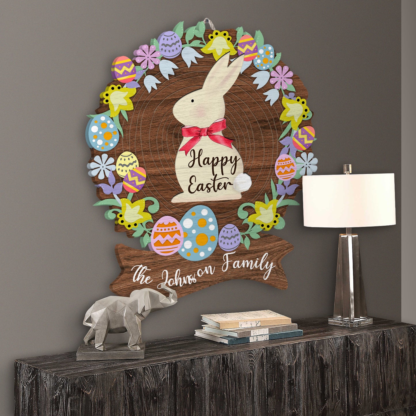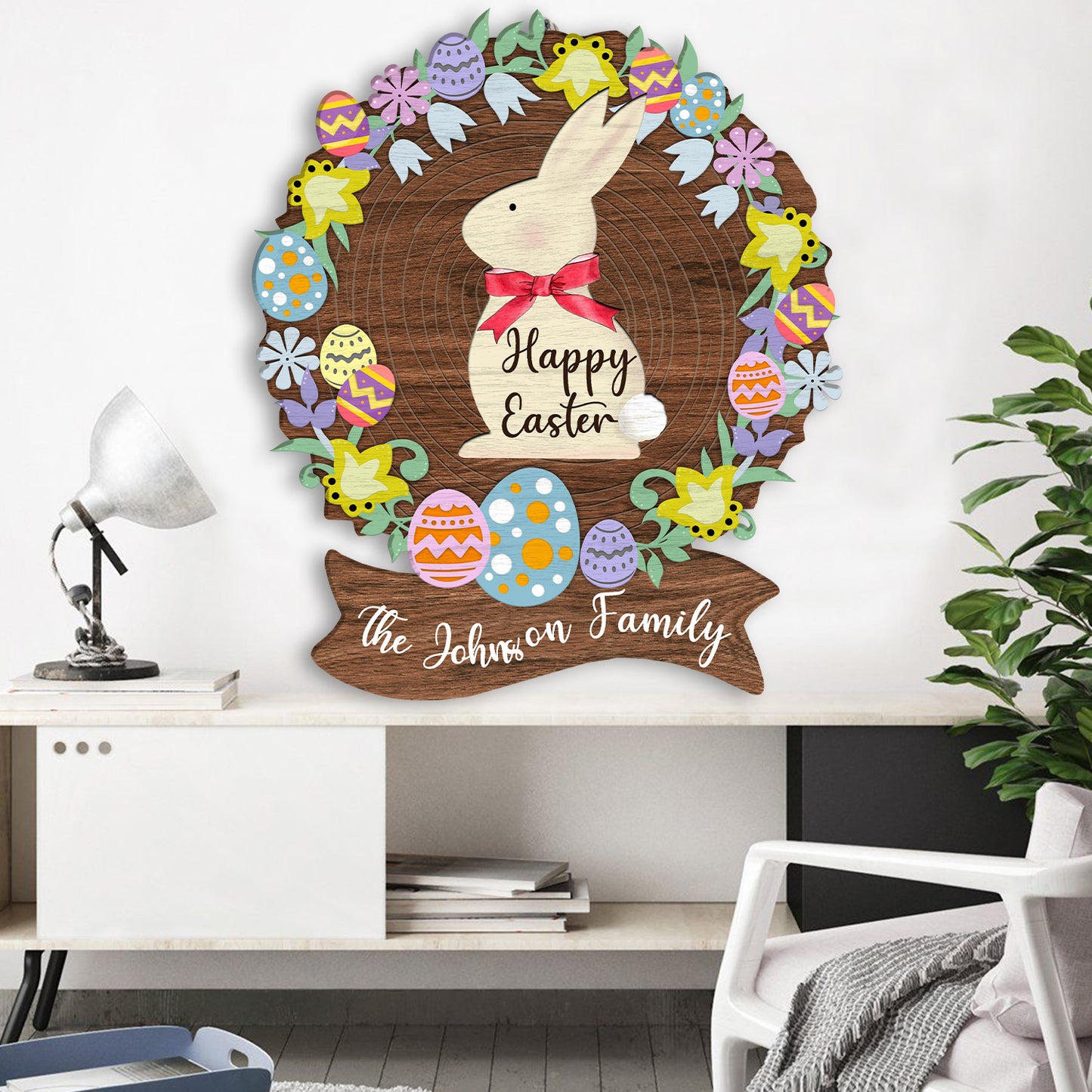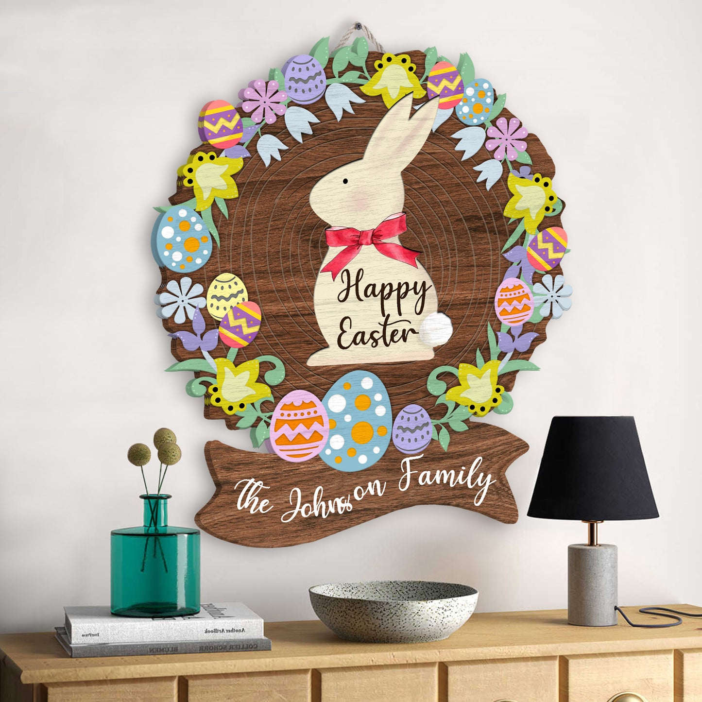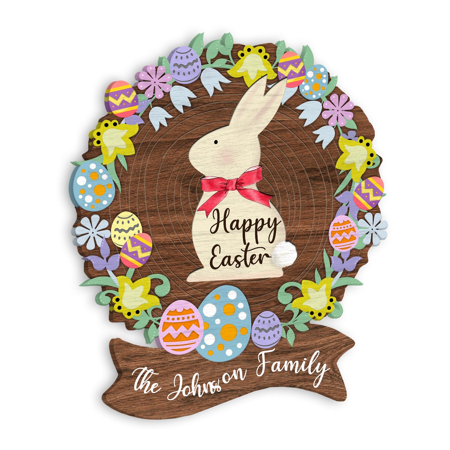 Custom Name Happy Easter Wreath Egg Decoration Wooden Sign Personalizedwitch