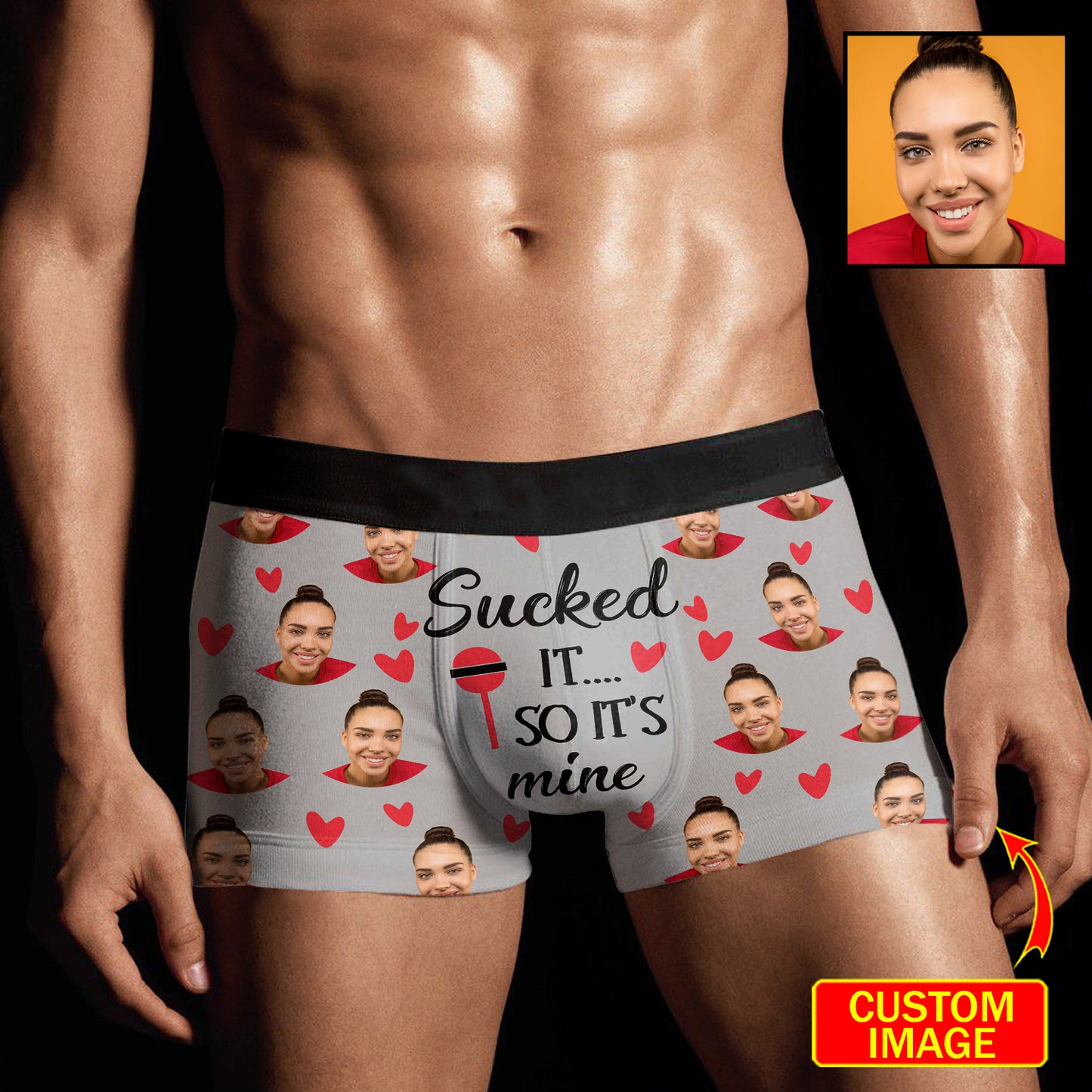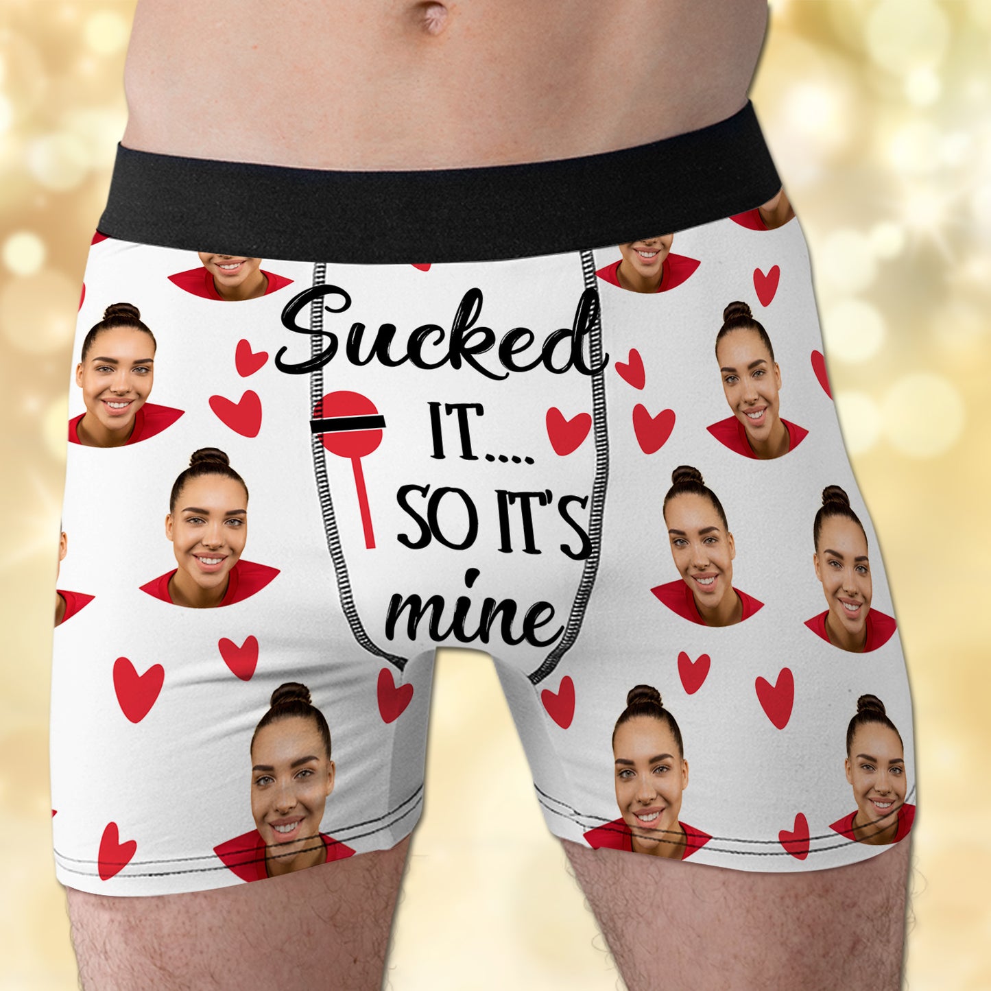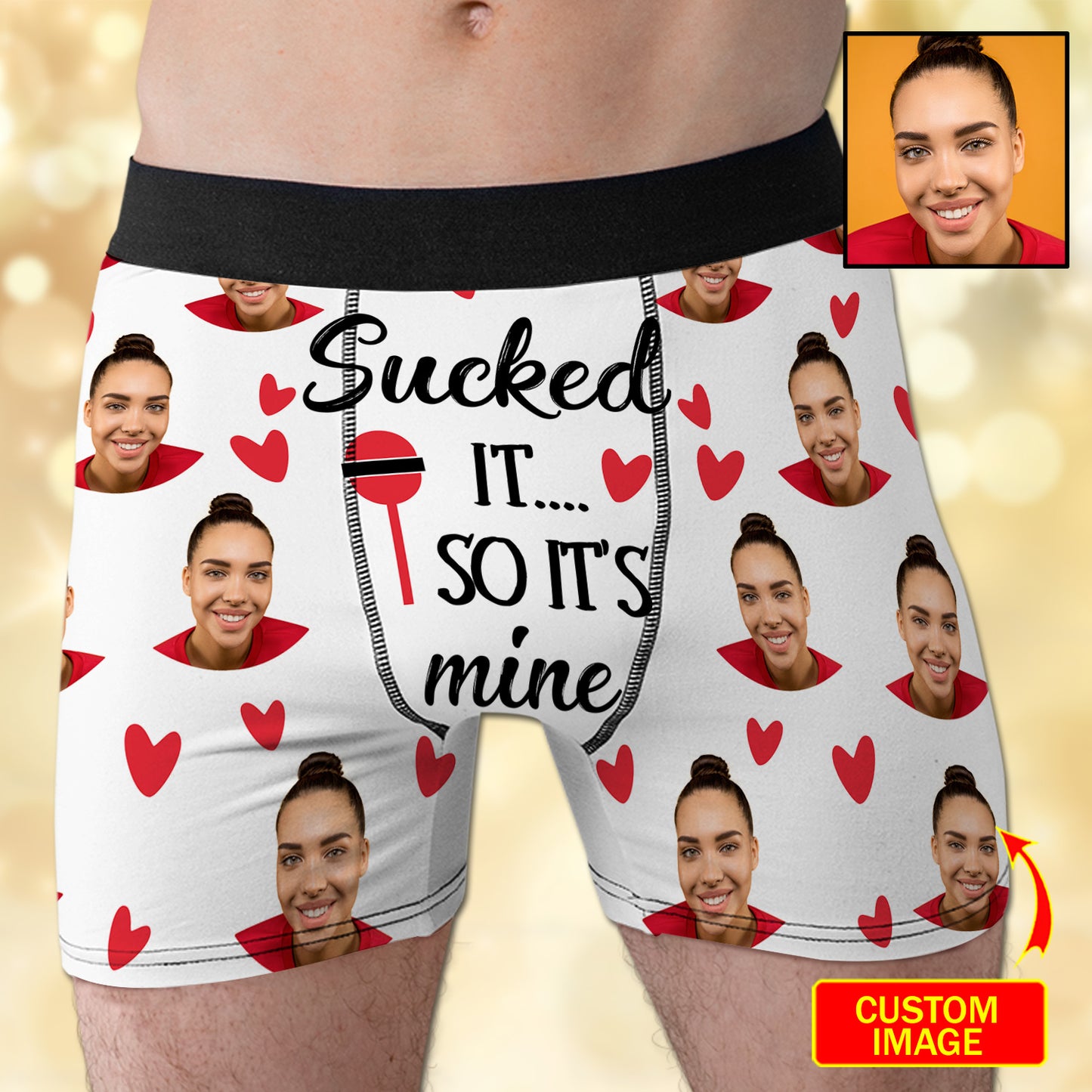 Funny Custom Face Sucked It...So It's Mine Valentine Men's Boxer Brief