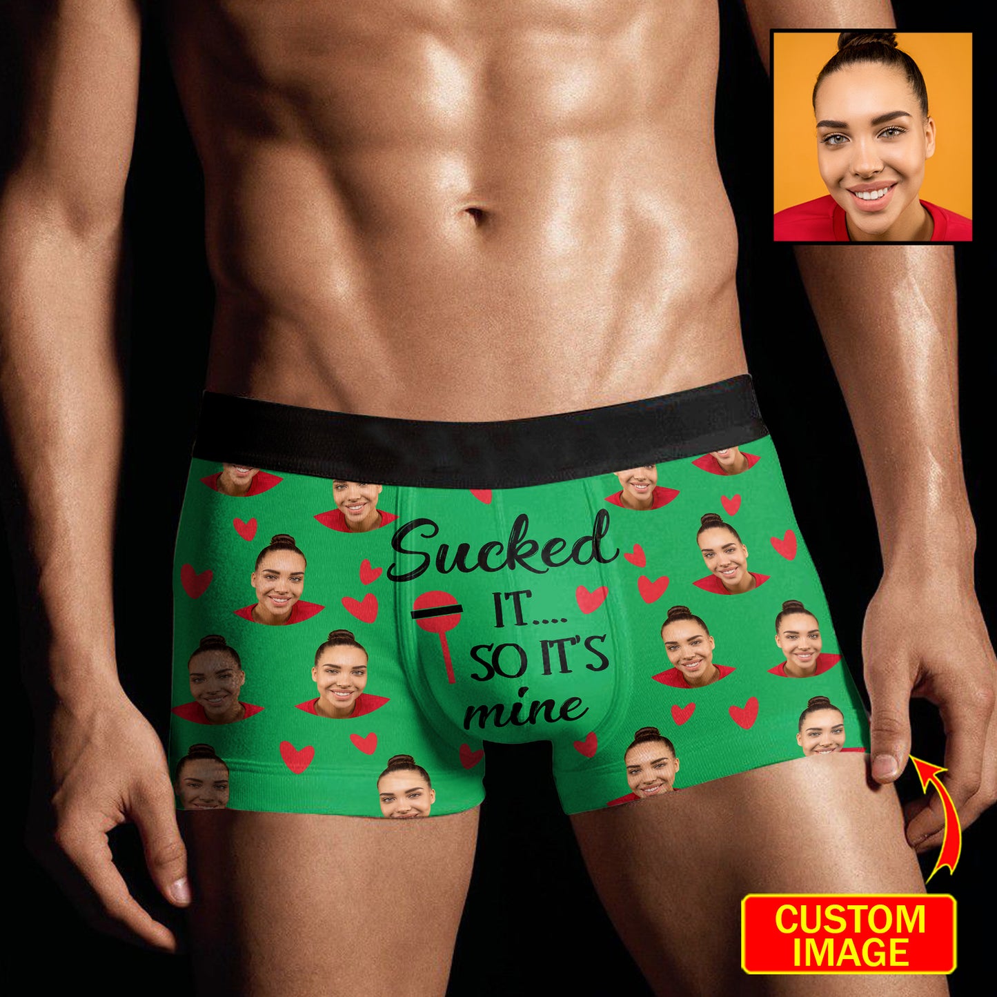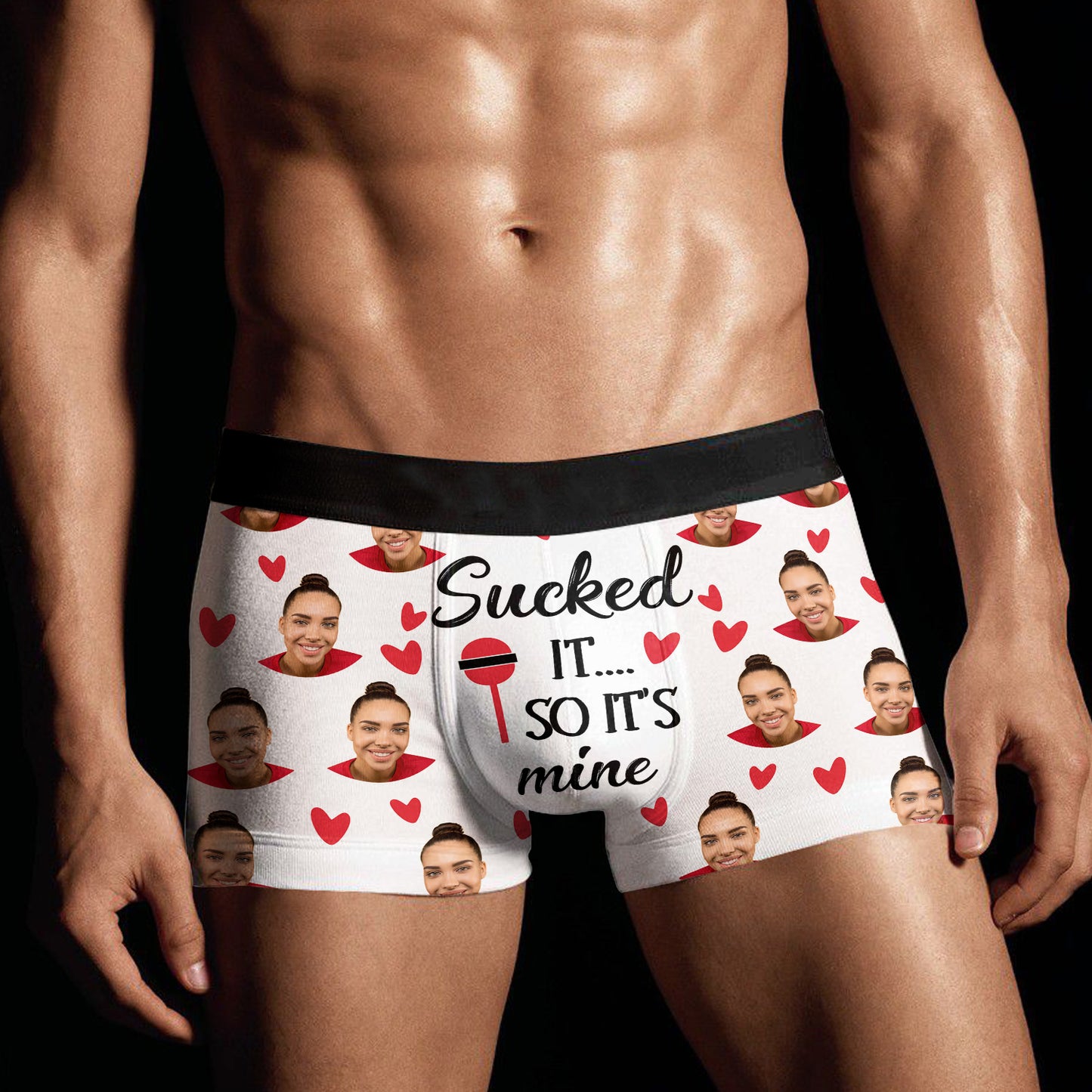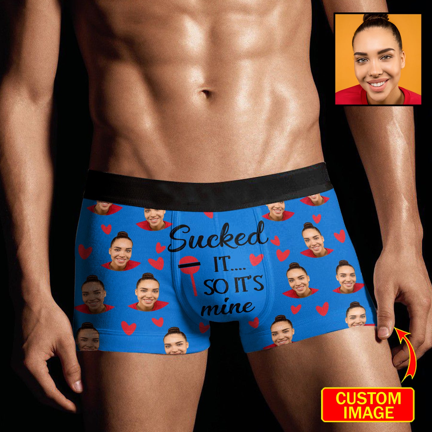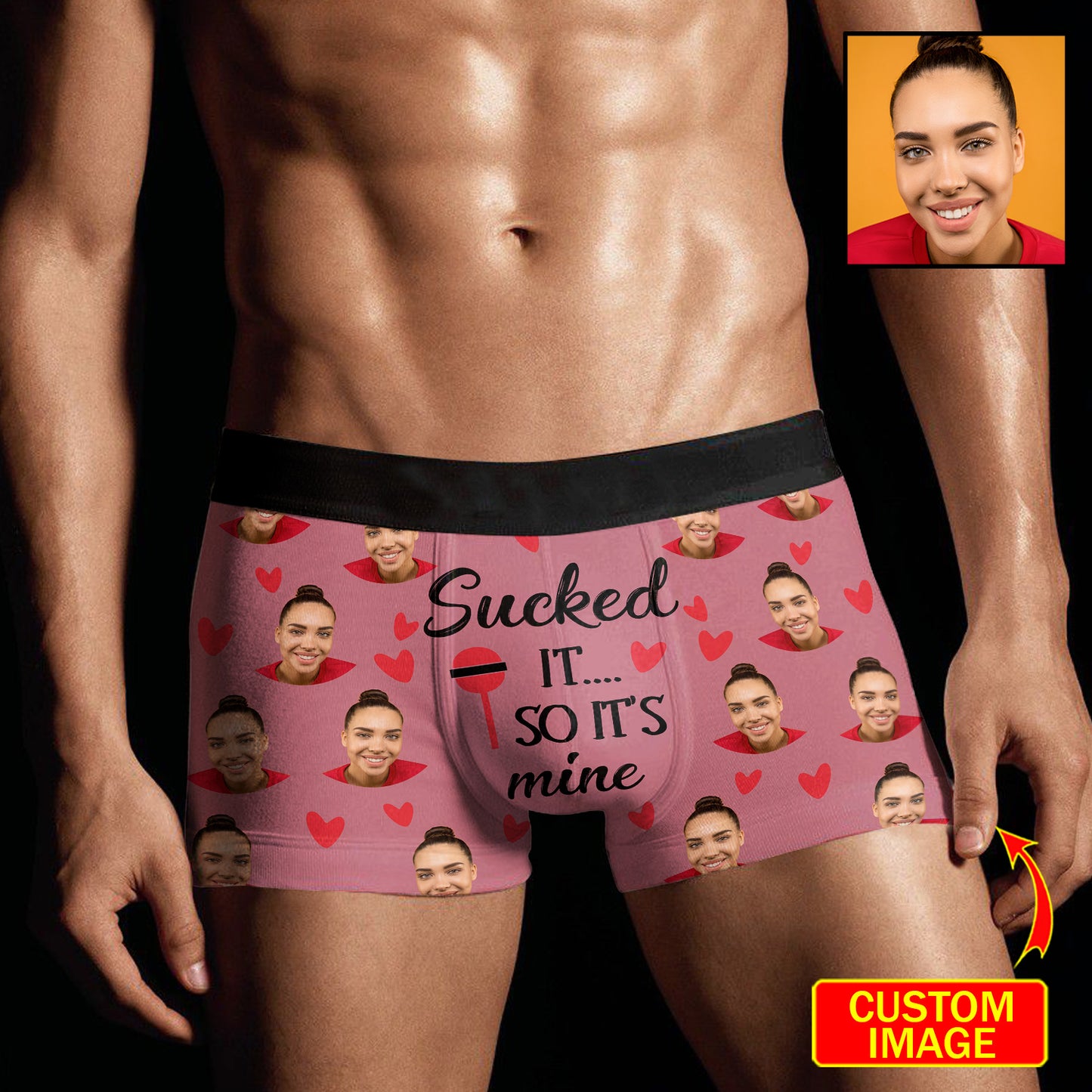 Funny Custom Face Sucked It...So It's Mine Valentine Men's Boxer Brief