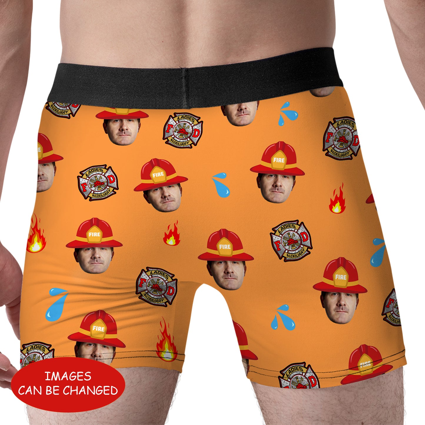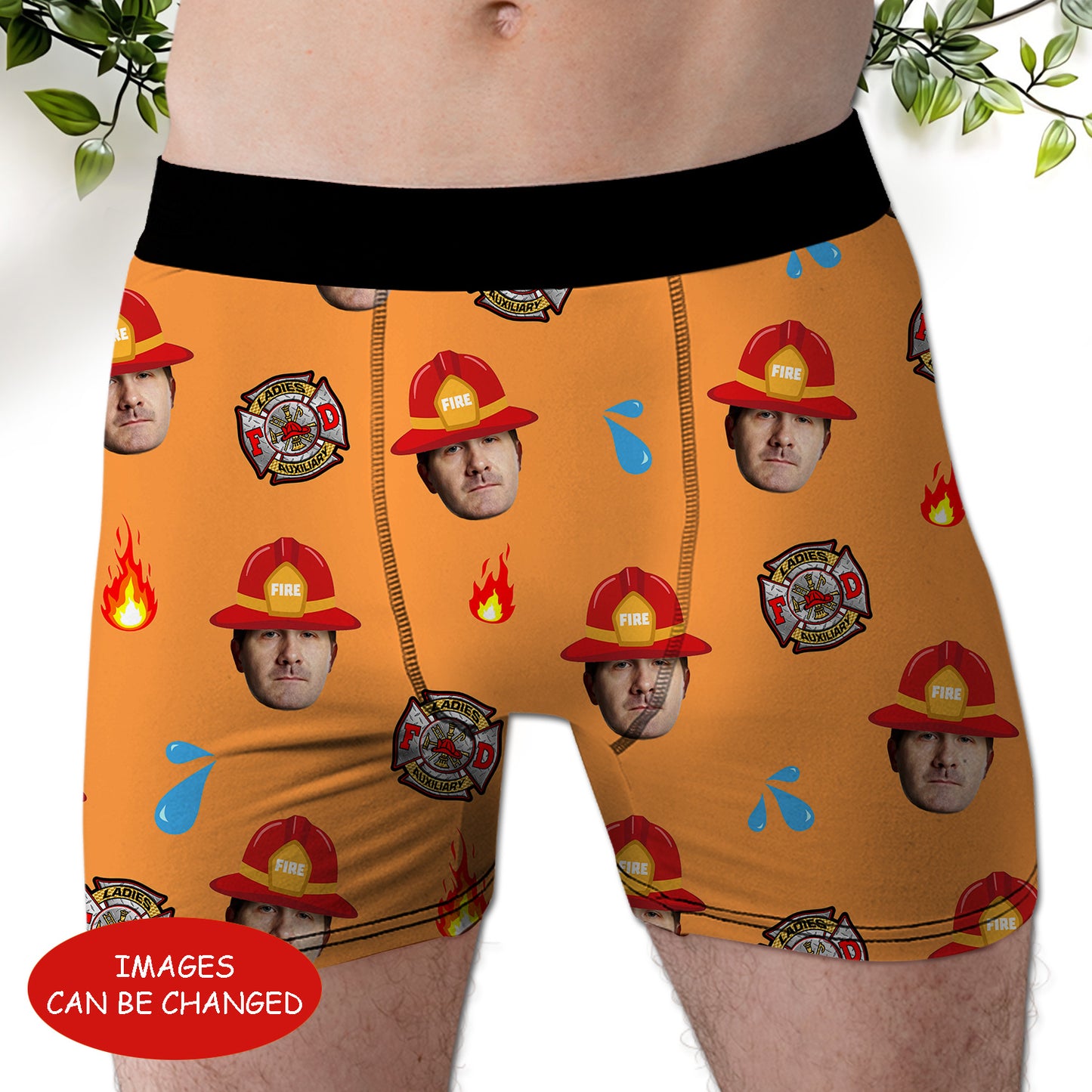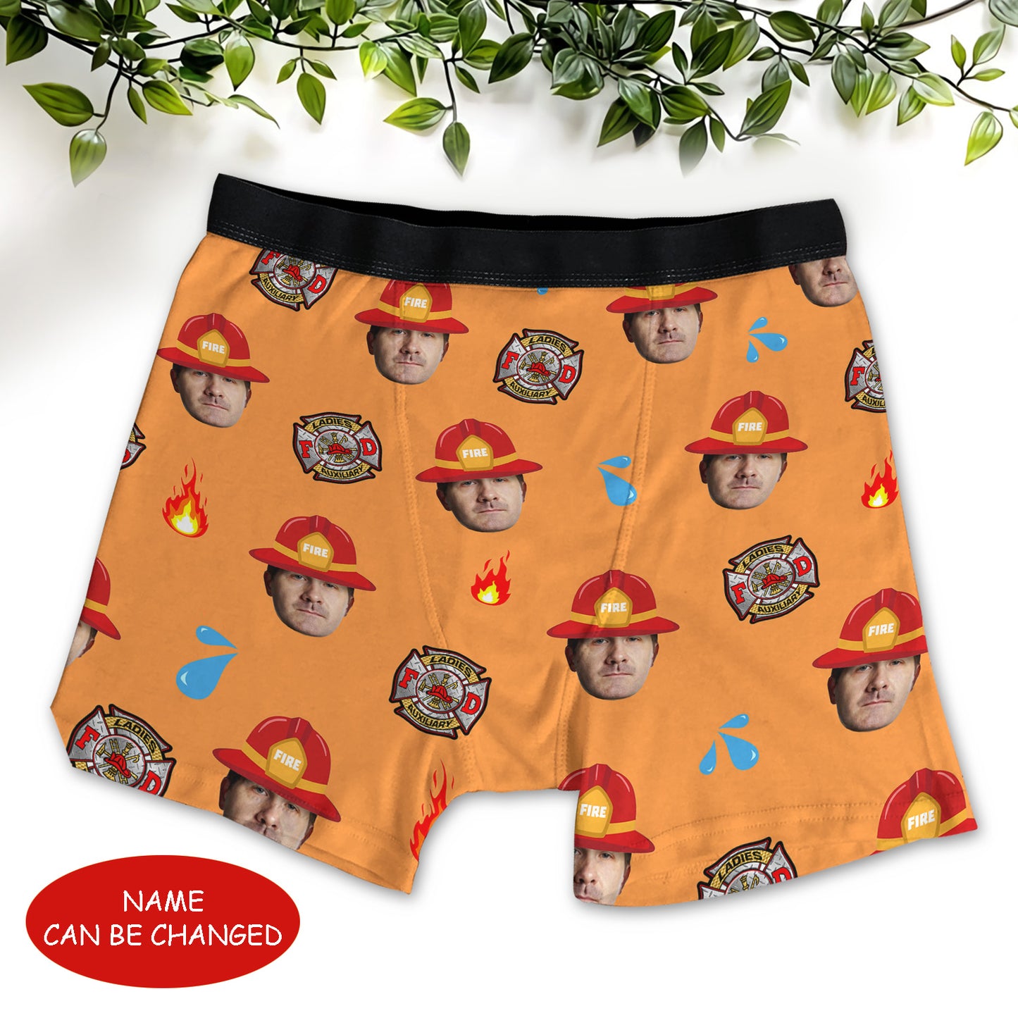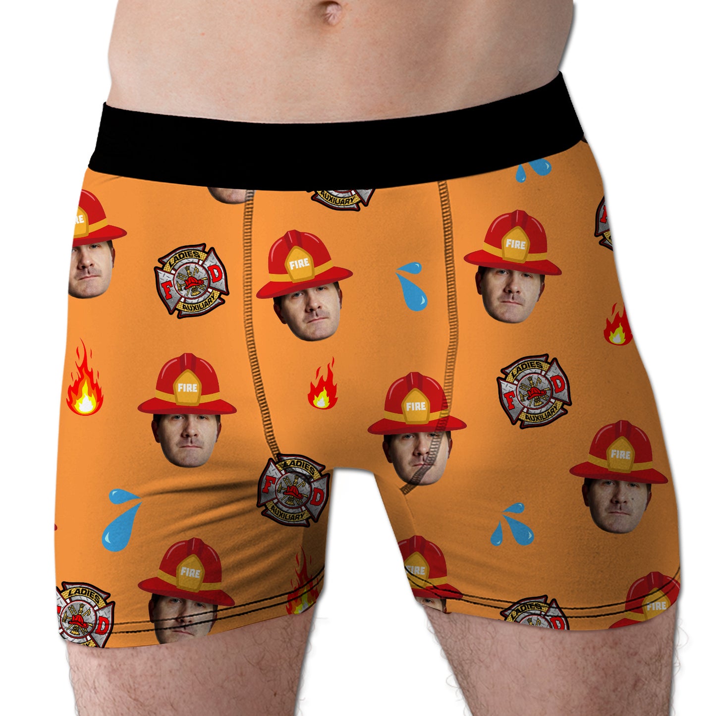 Funny Custom Face Firefighter Over Print Men's Boxer Brief