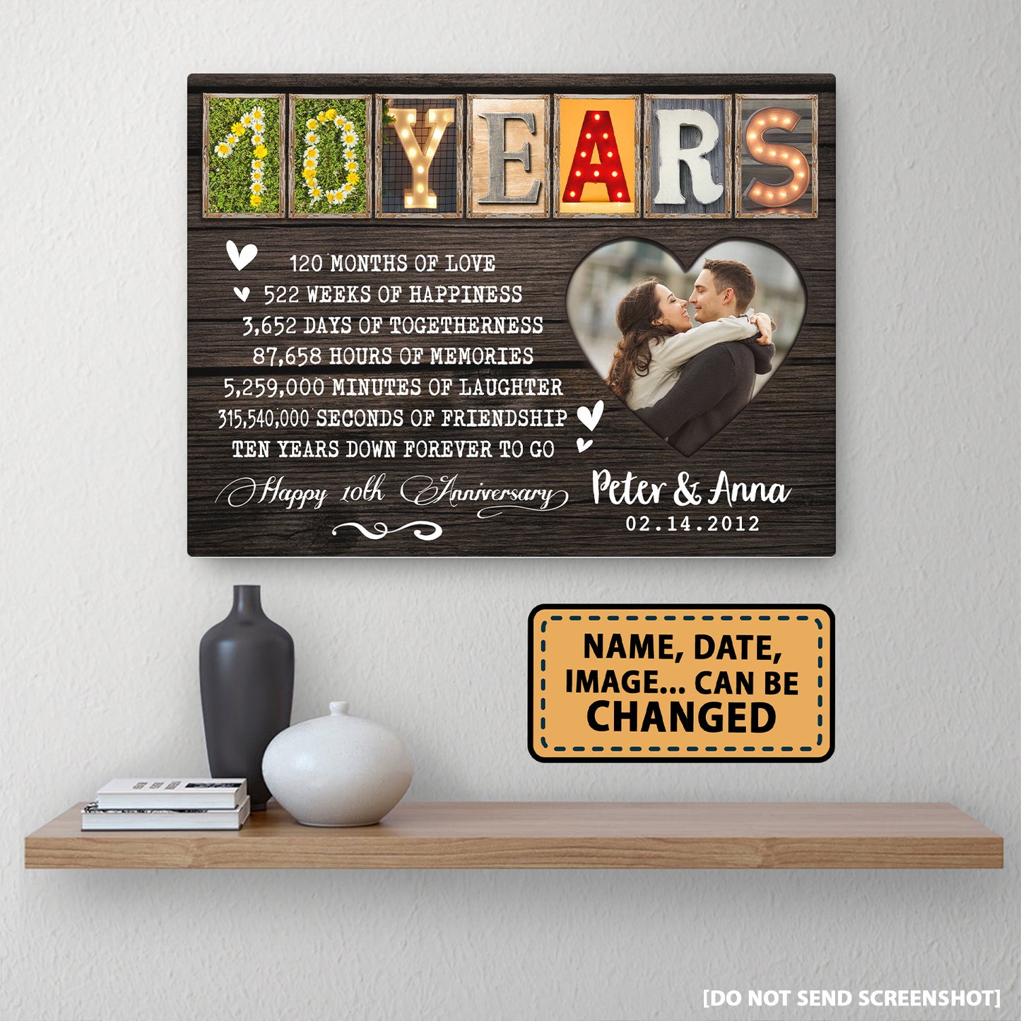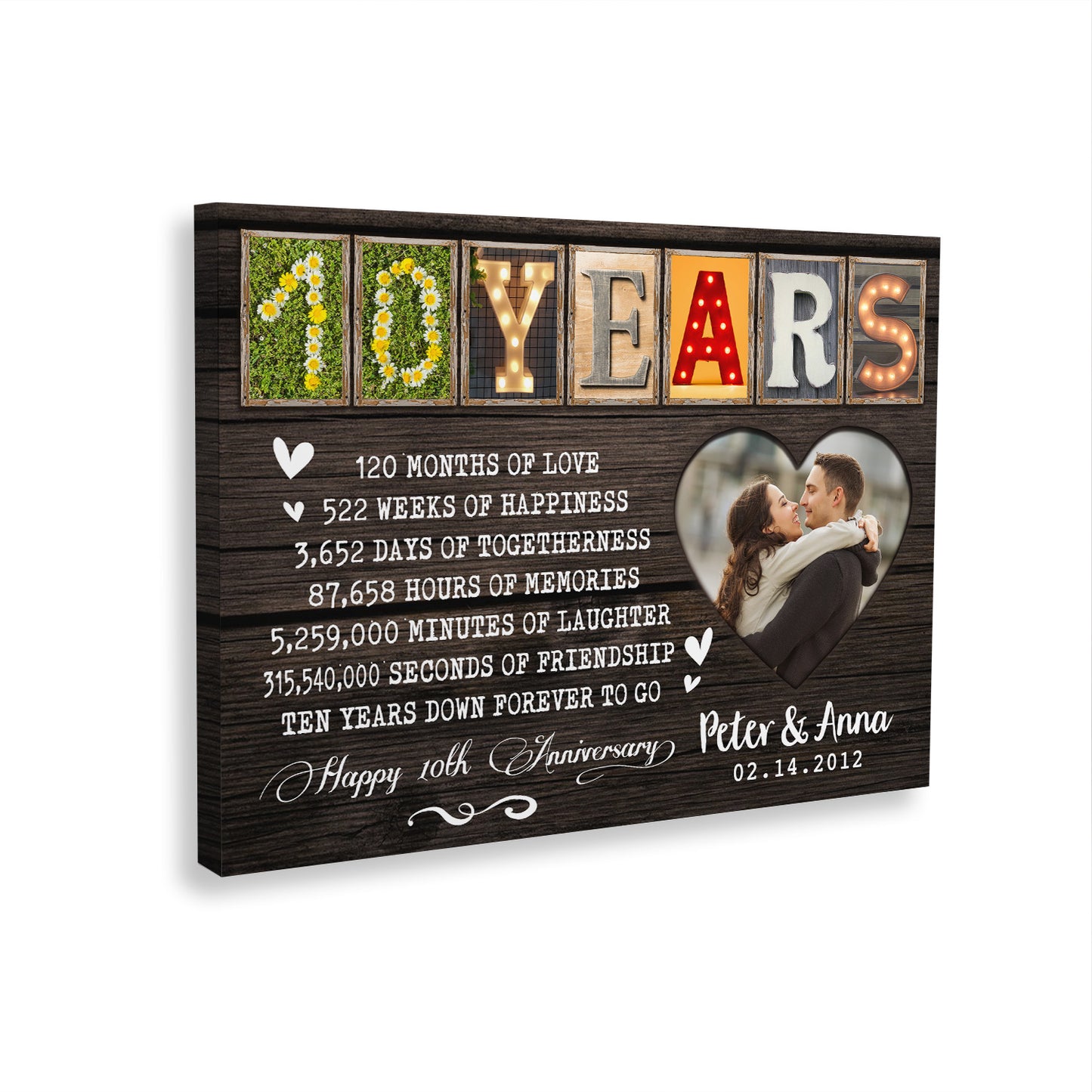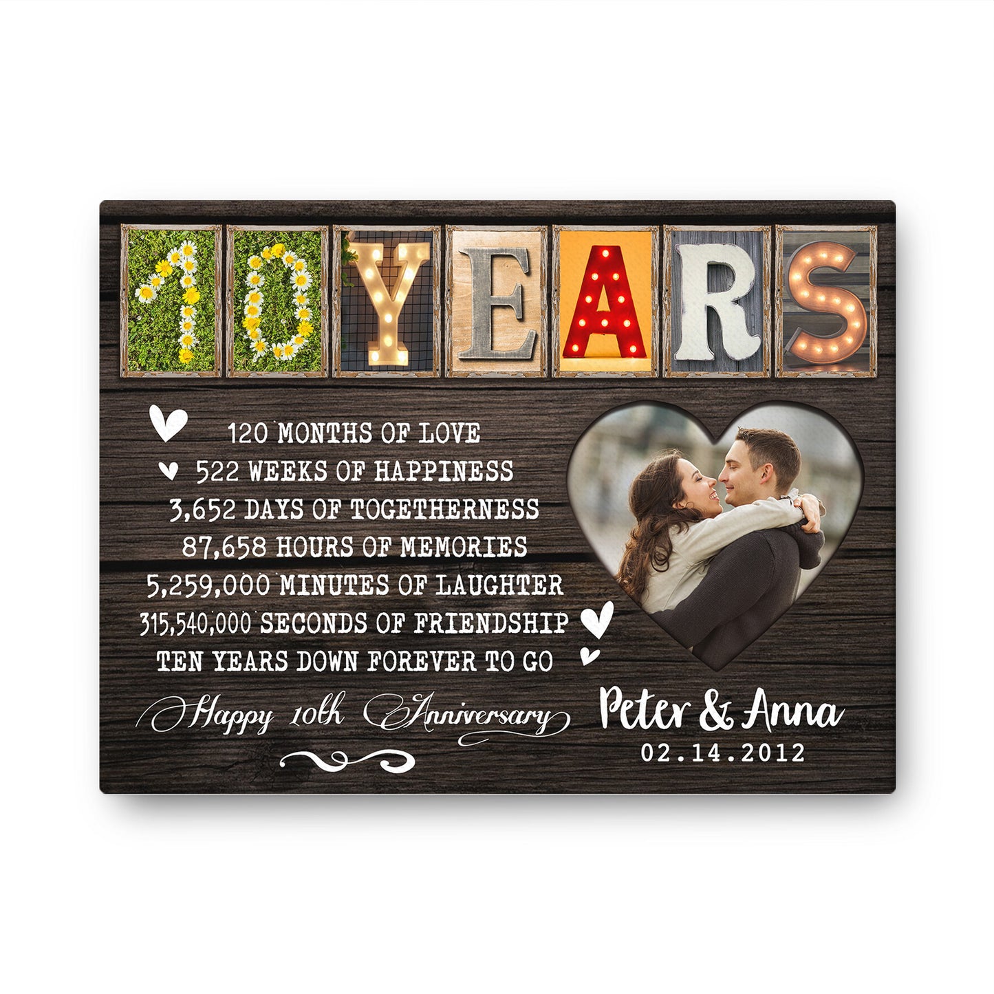 Happy 10 Years 10th Anniversary Custom Image Personalized Canvas