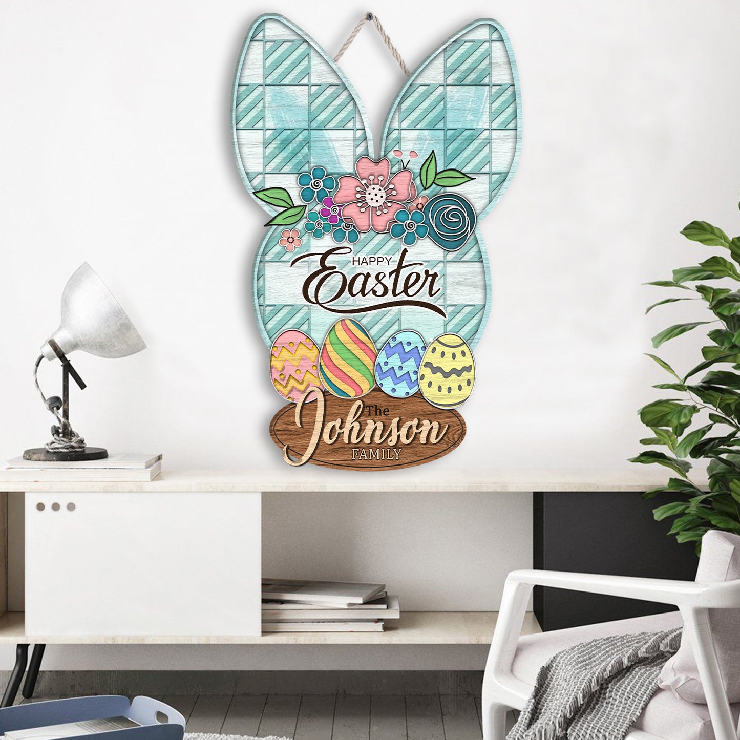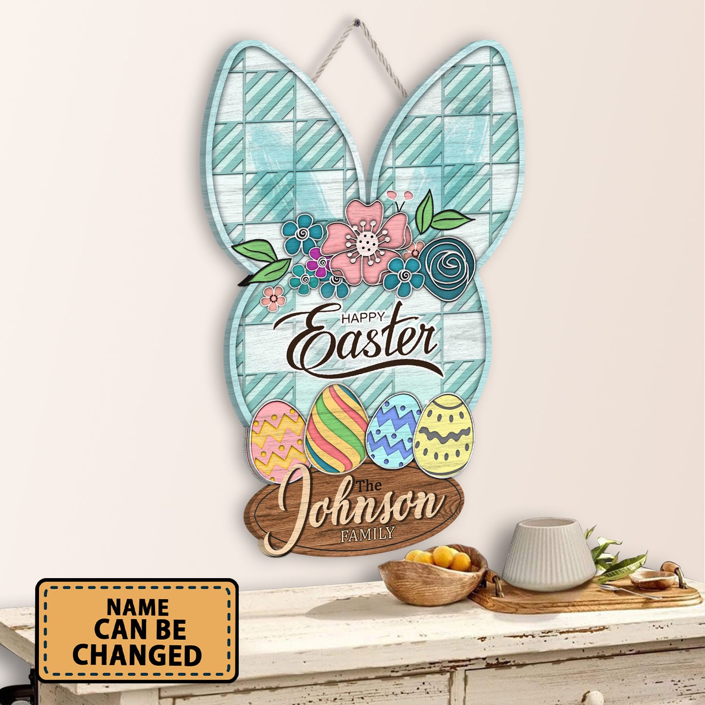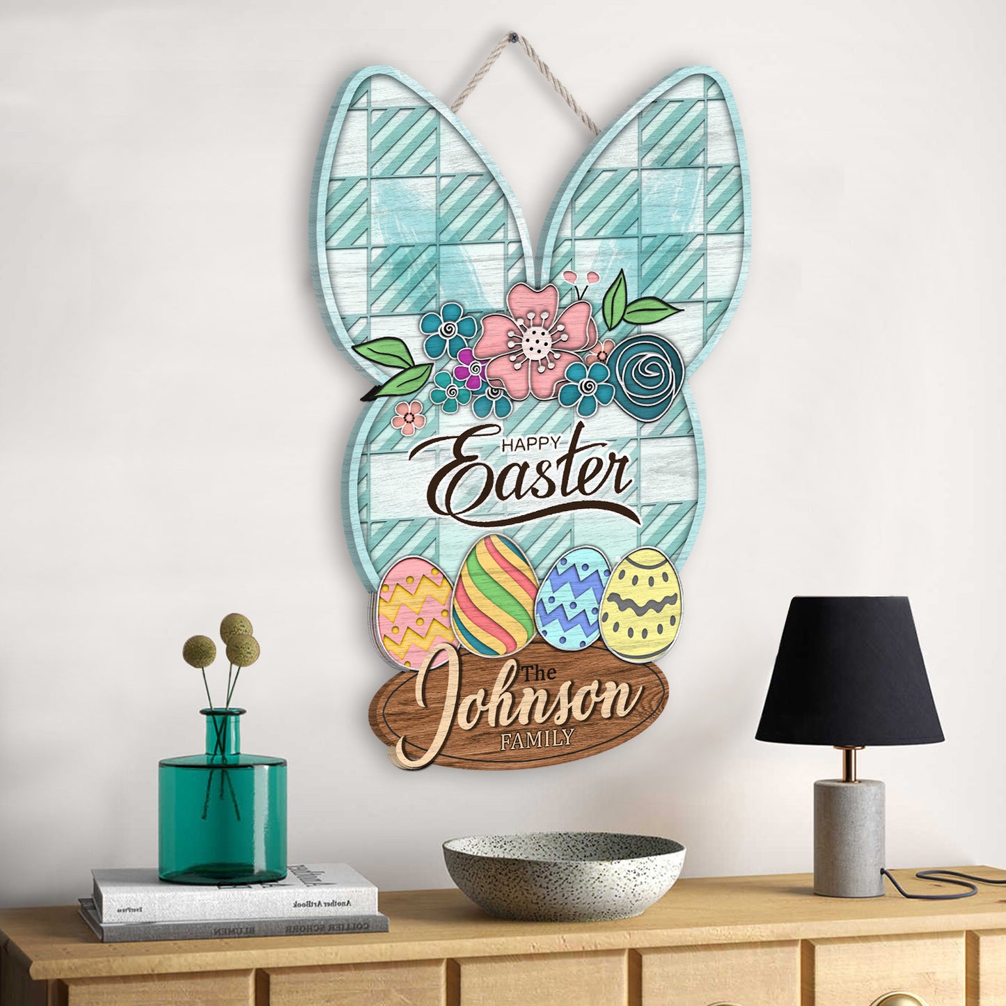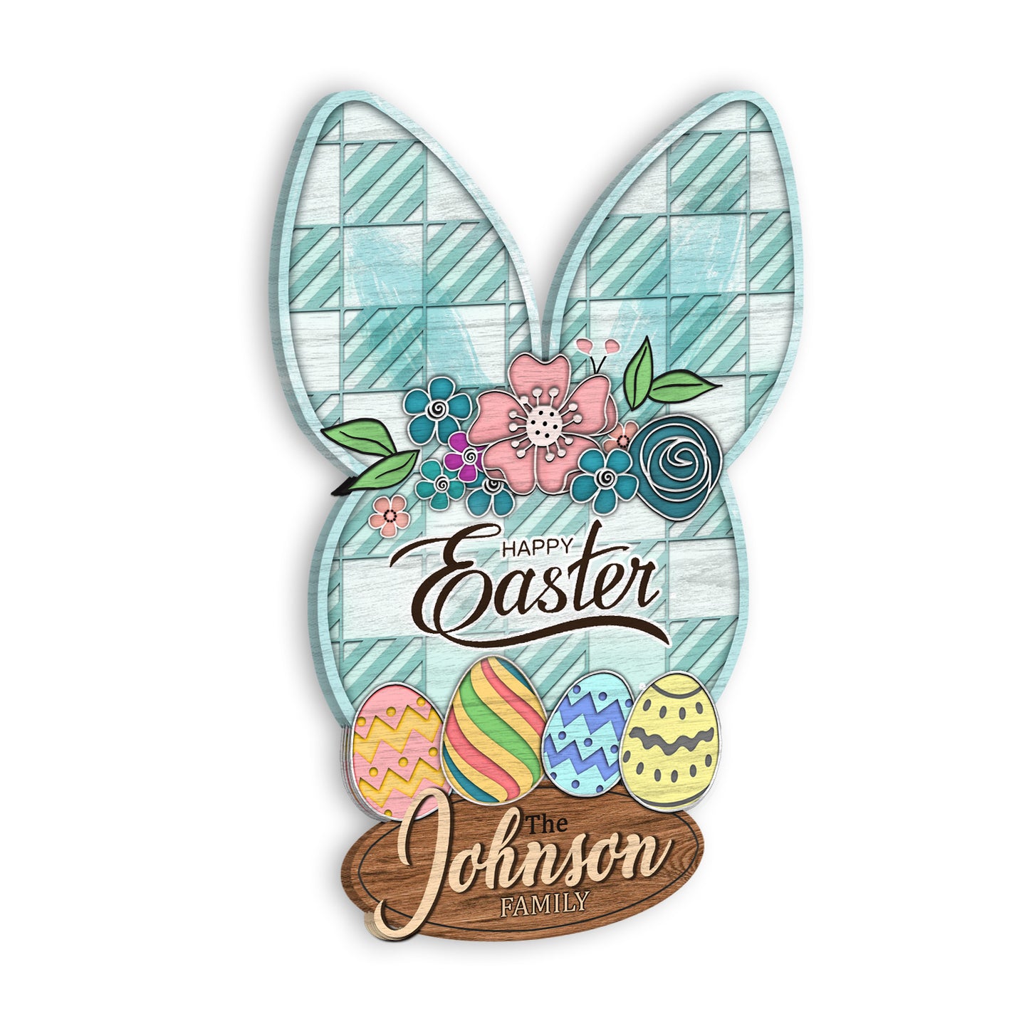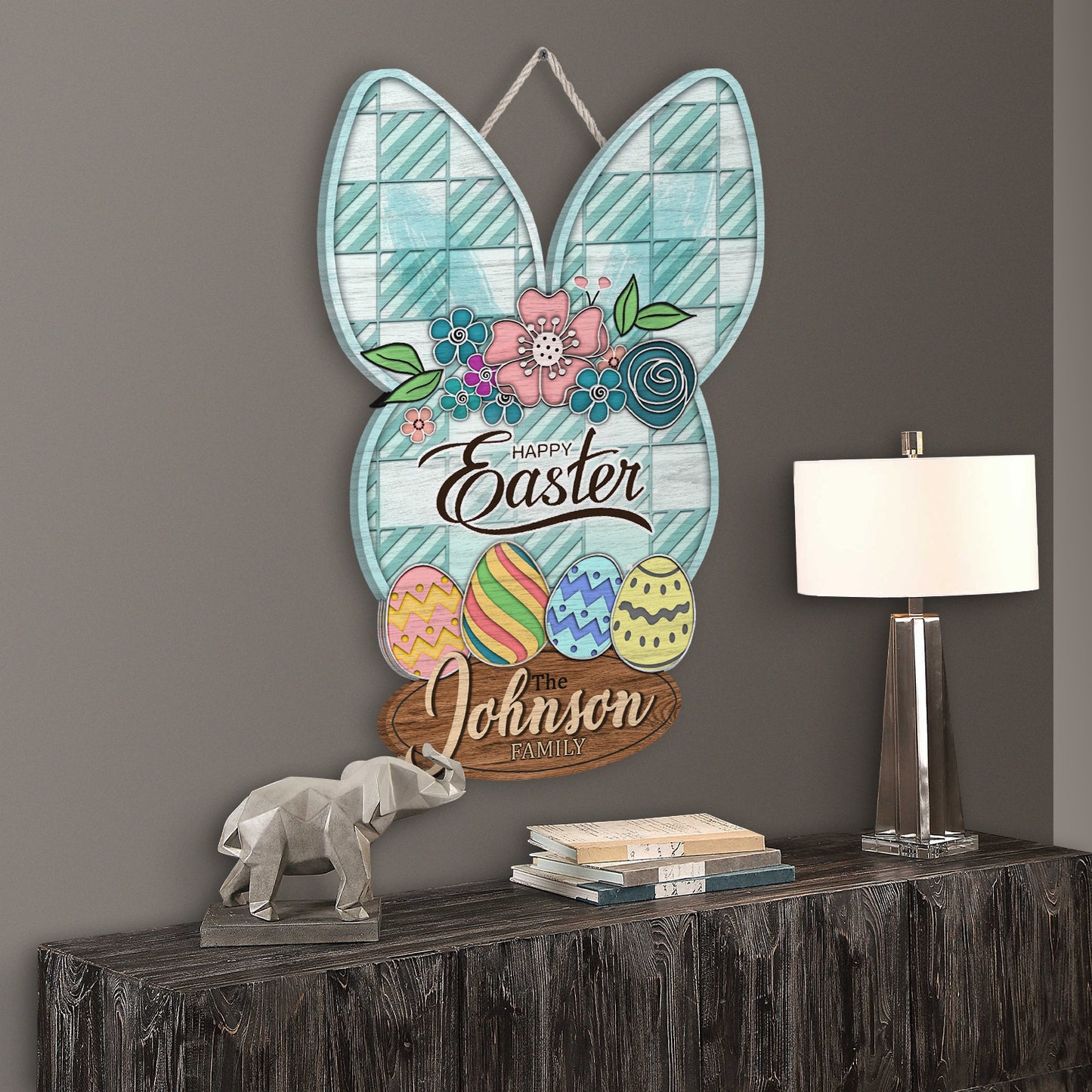 Happy Easter Rabbit Egg Family Decoration Wooden Sign Personalizedwitch