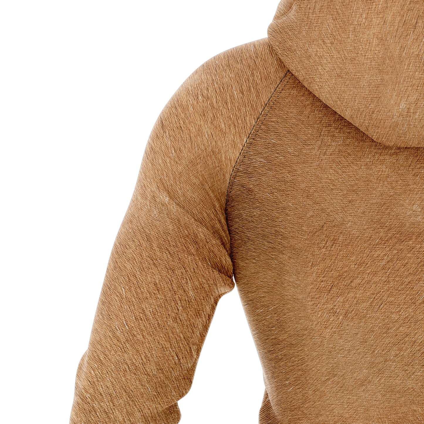 - Features pronounced sleeve cuffs, prominent waistband hem and kangaroo pocket fringes