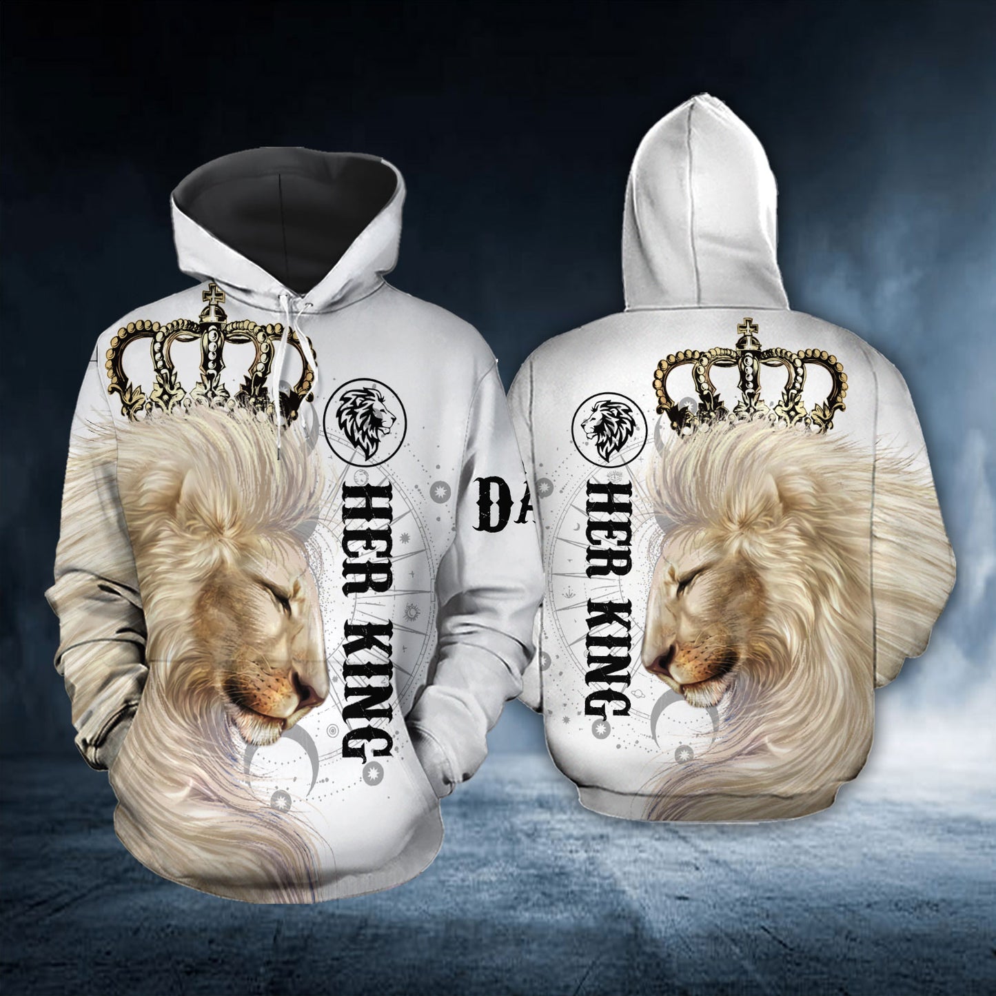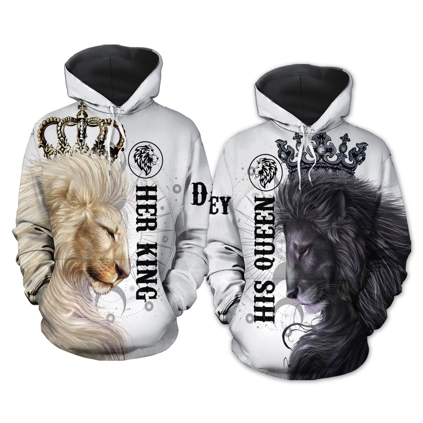 Lion Couple Custom Name All Over Print Valentine Gift Couple Matching 3D Hoodie Personalizedwitch For Couple