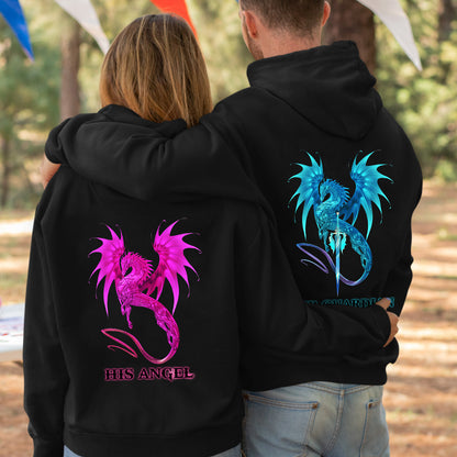 Mythical Dragon Couple Her Guadian His Angel Valentine Gift Couple Matching Hoodie