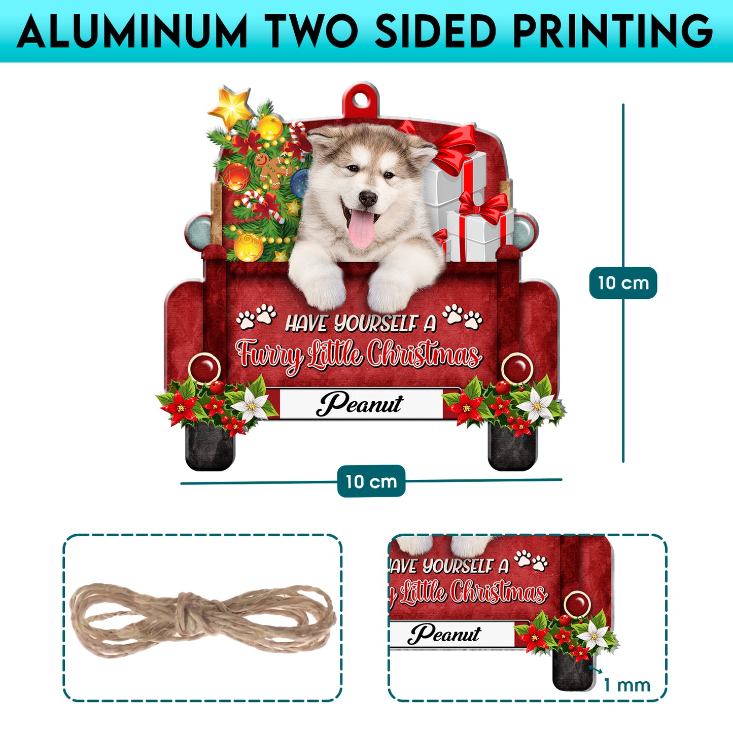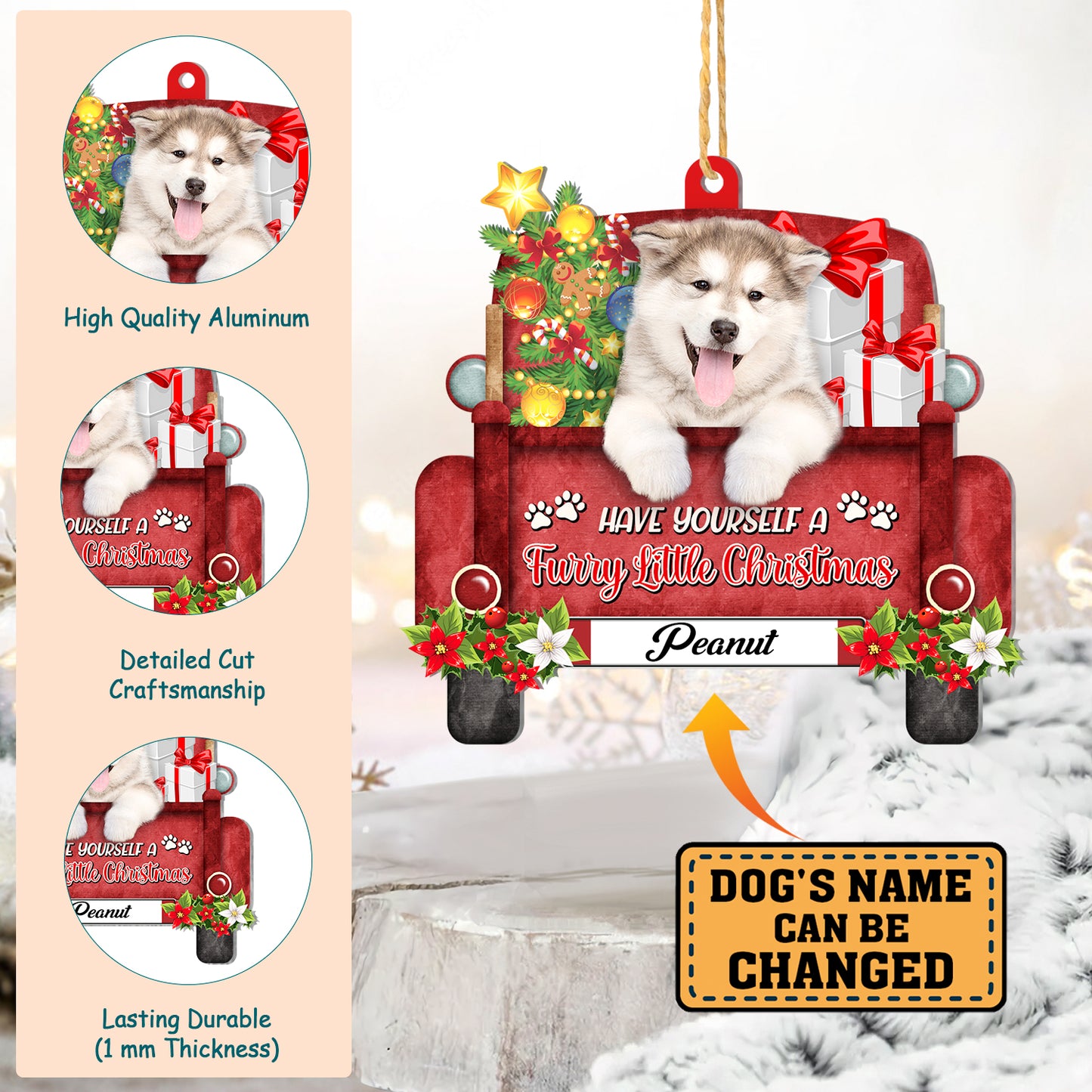 Personalized Alaskan Malamute Red Truck Christmas Aluminum Ornament