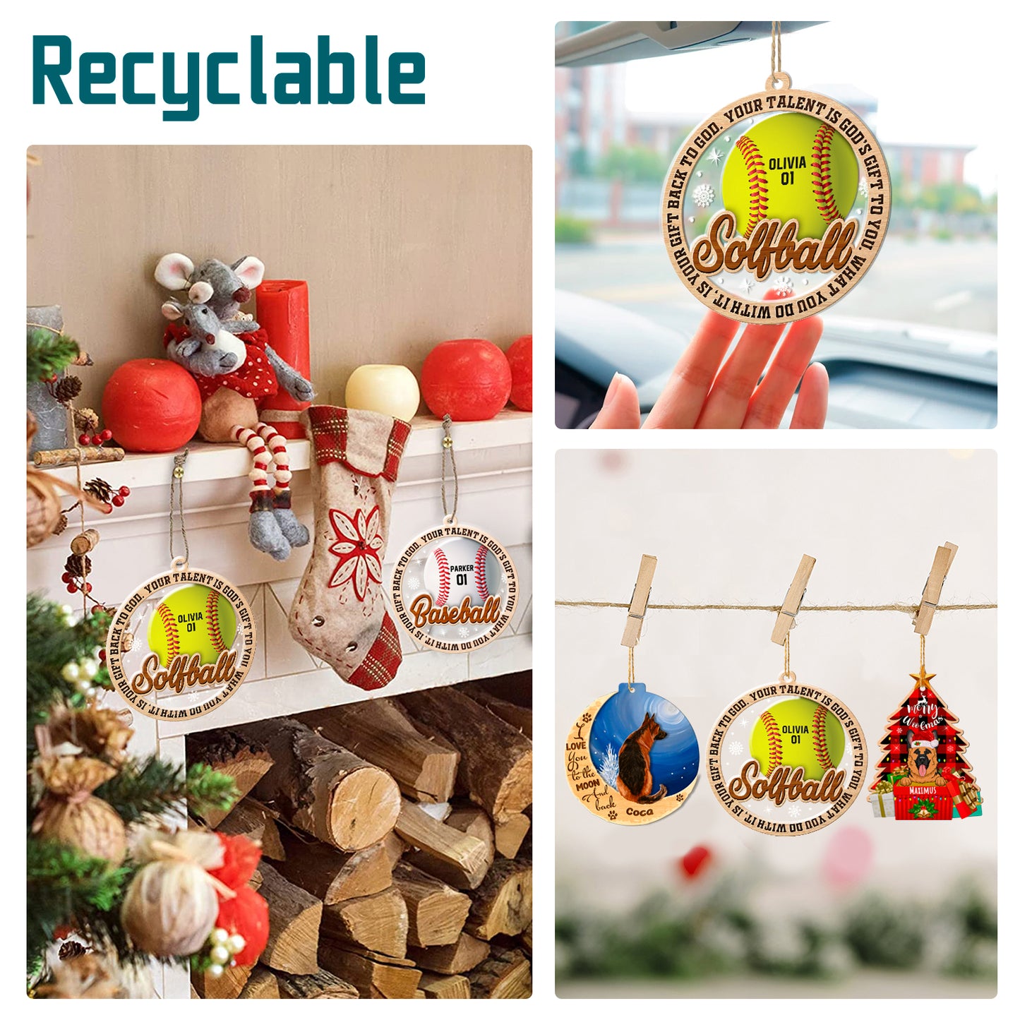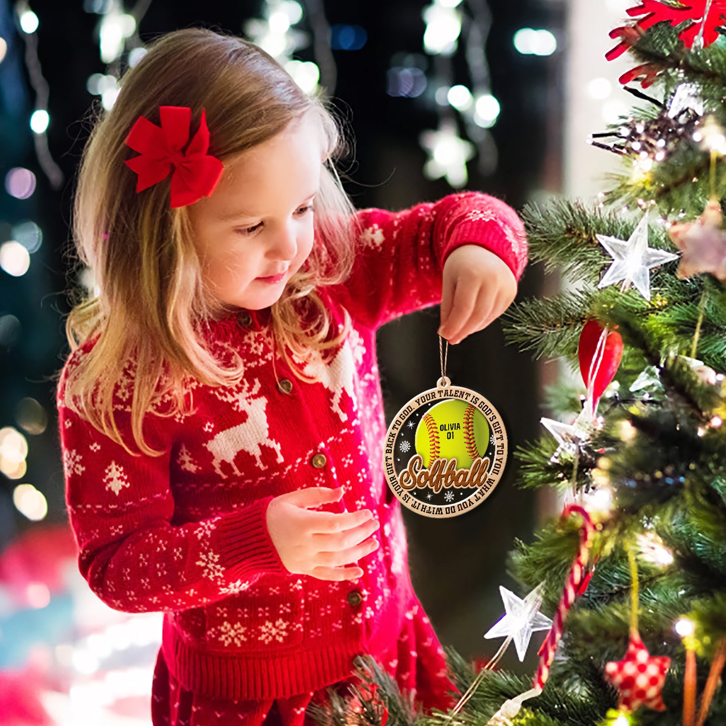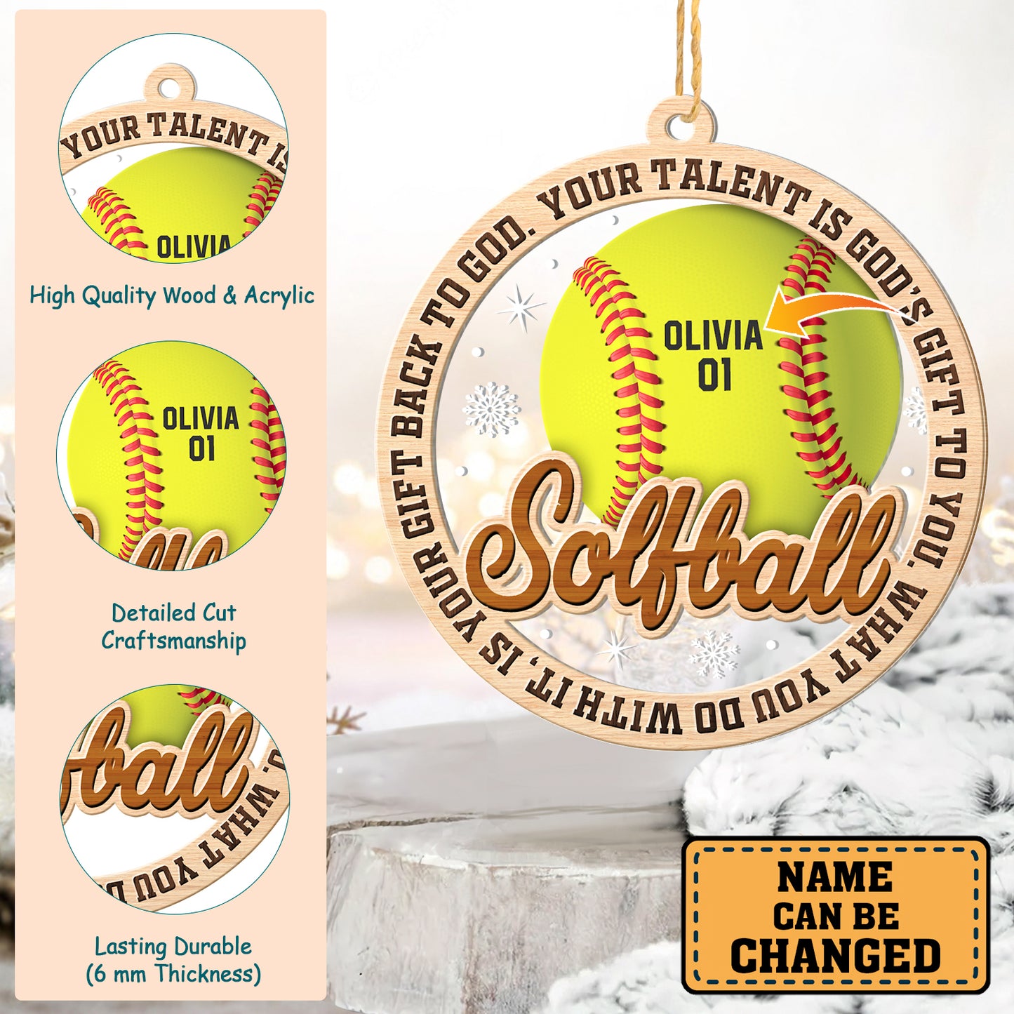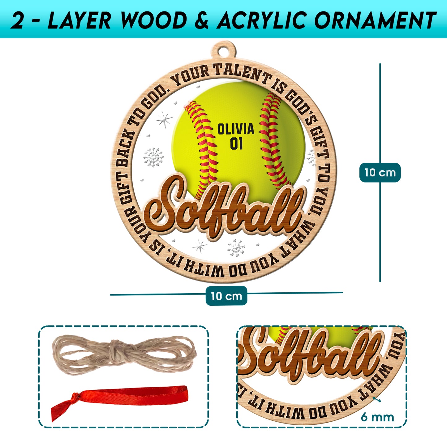 Personalized Softball 2-Layer Wood & Acrylic Christmas Ornament