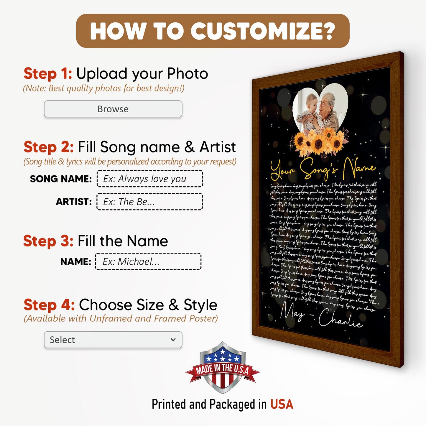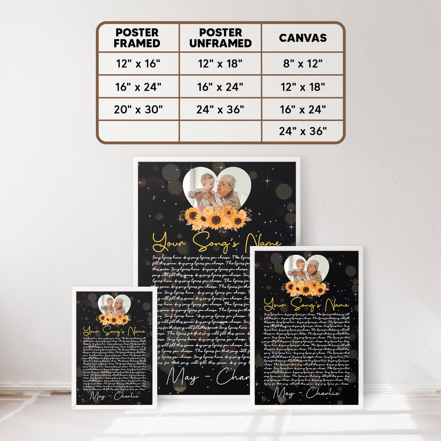 Song Lyrics Custom Image Gift For Grandma Sunflower Vertical Poster