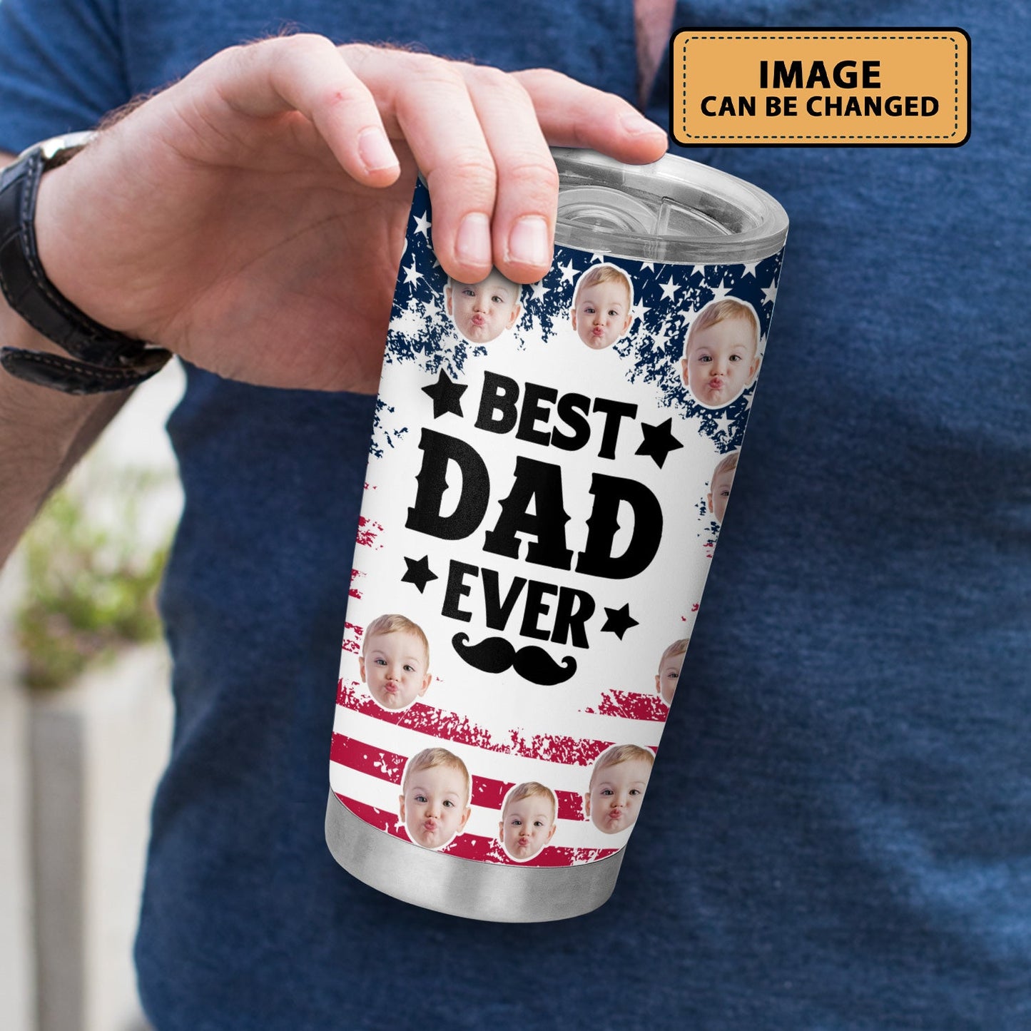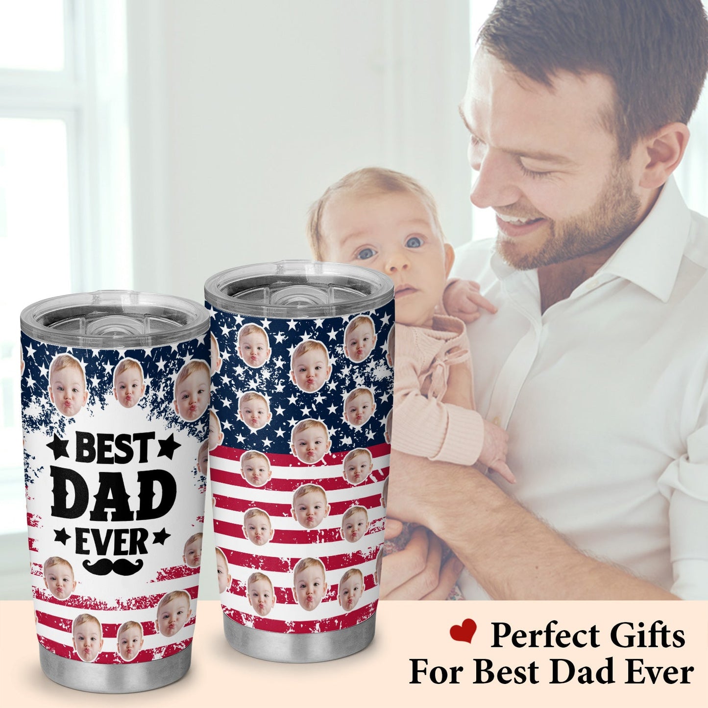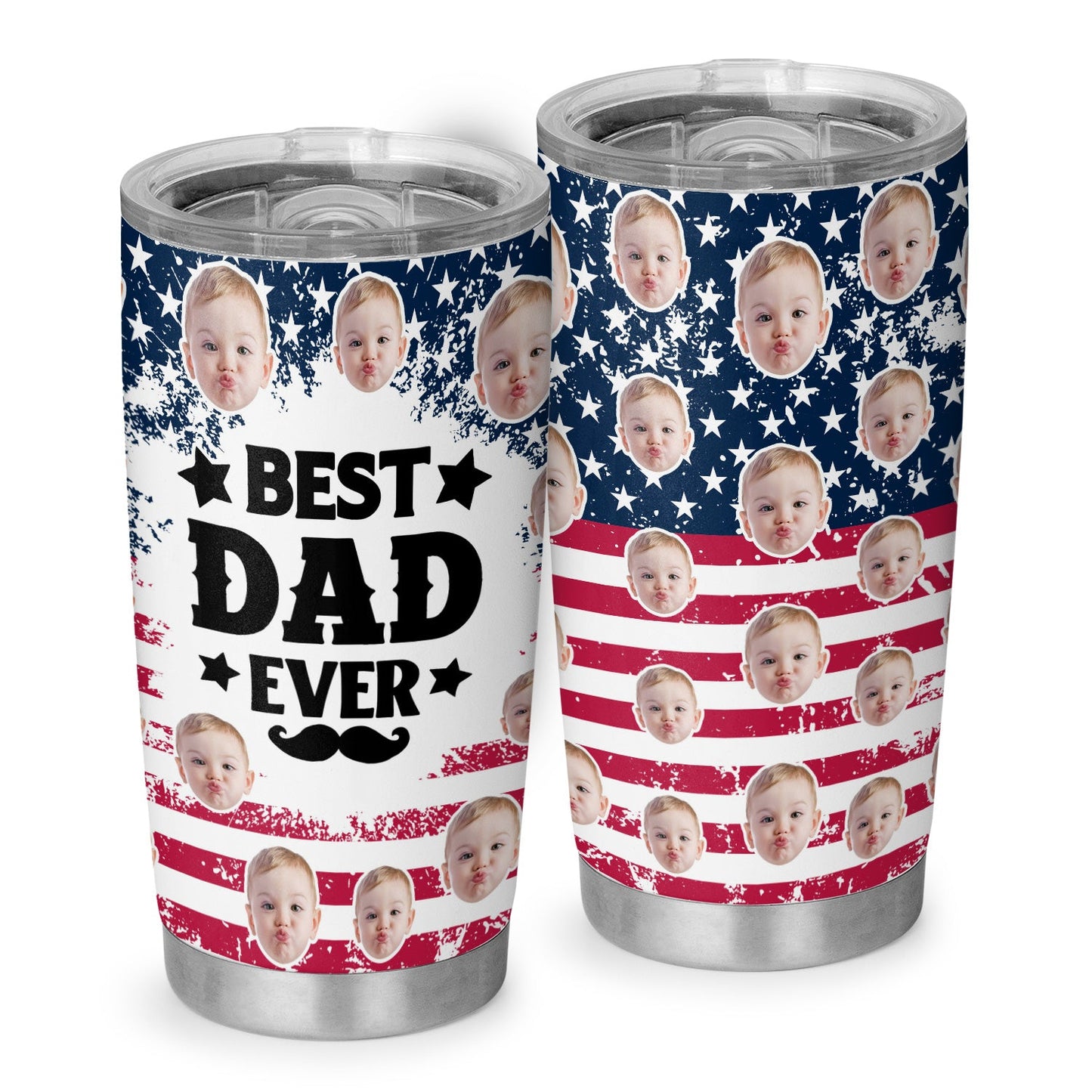 Best Dad Ever New Dad USA Flag Personalized Face 20Oz Tumbler