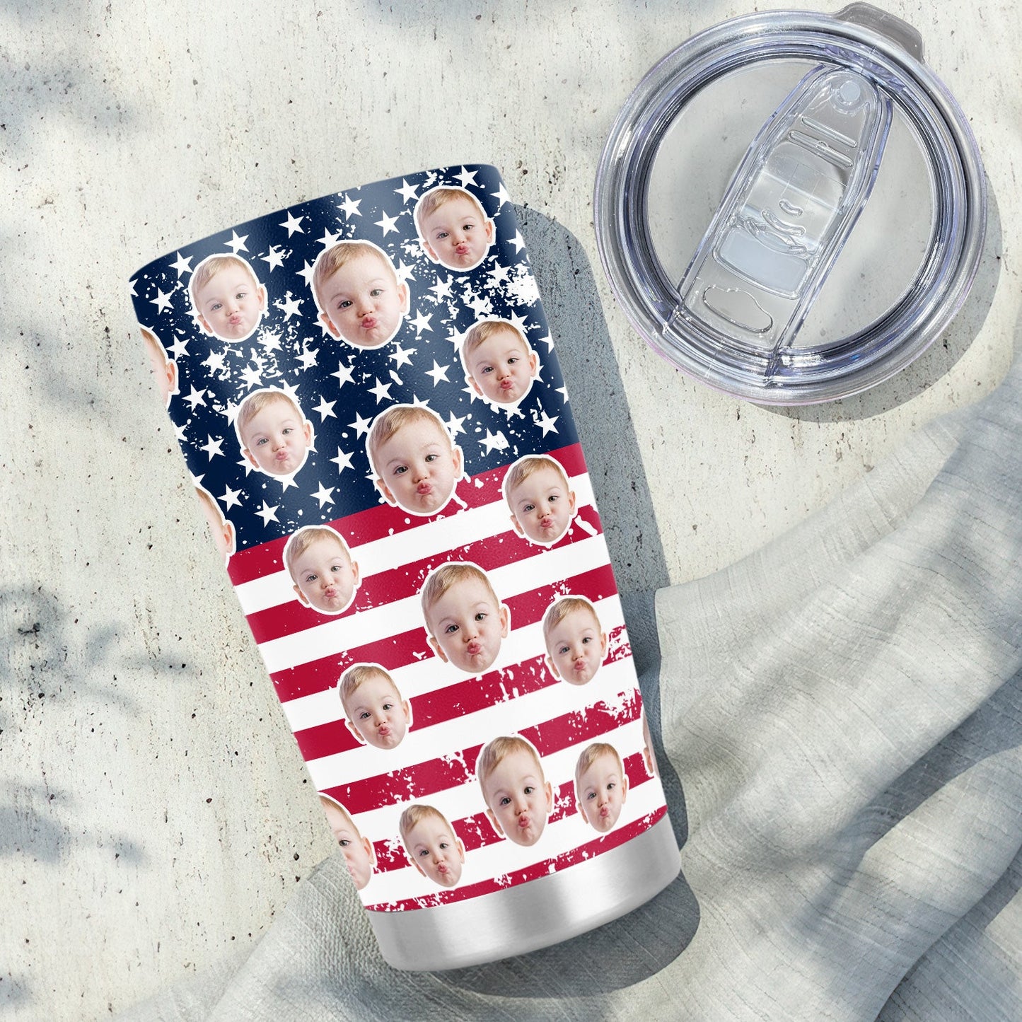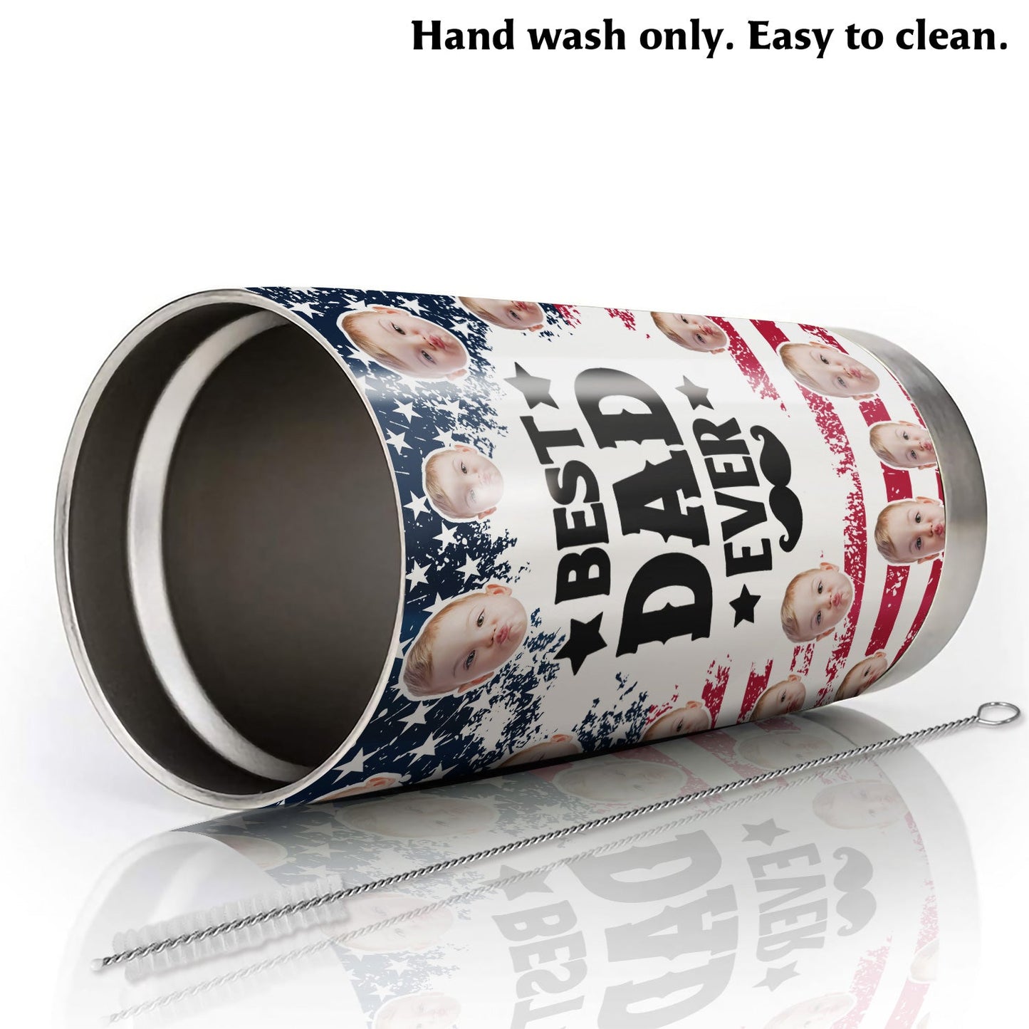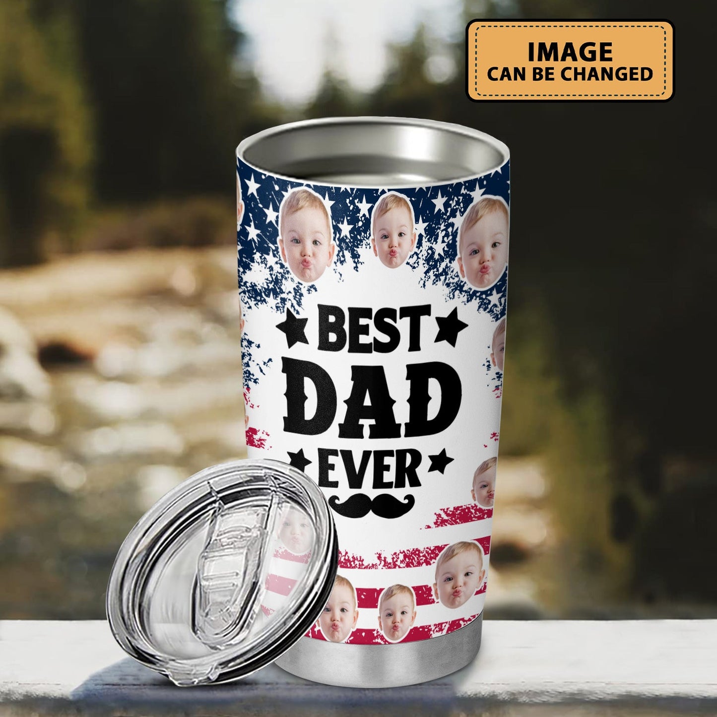 Best Dad Ever New Dad USA Flag Personalized Face 20Oz Tumbler