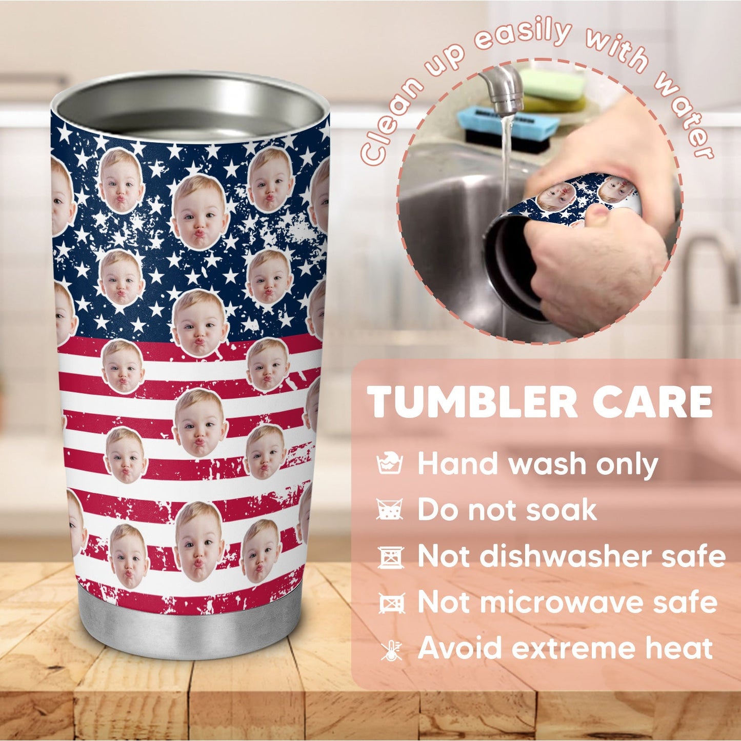 All tumblers are top rack dishwasher safe on low heat setting.