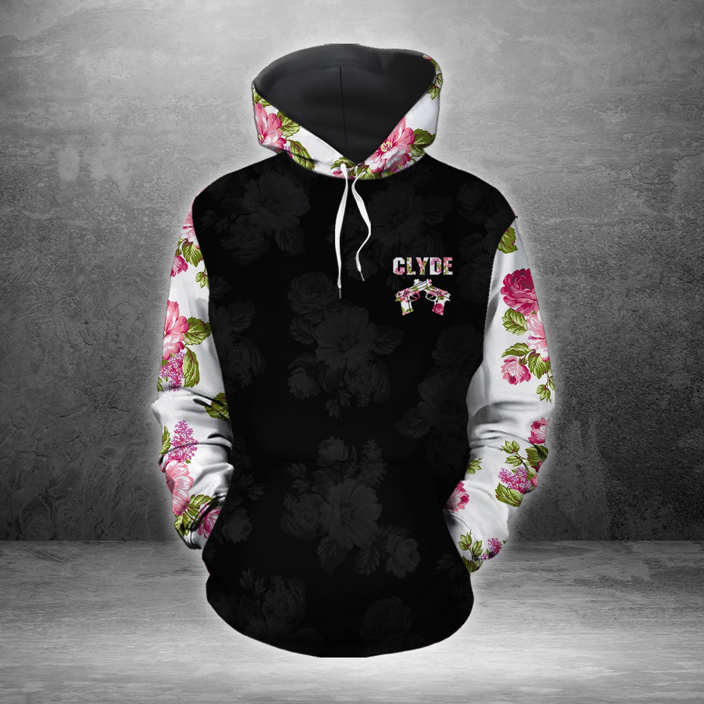 Bonnie and Clyde Crime Partners Flower All Over Print Valentine Gift Couple Matching 3D Hoodie