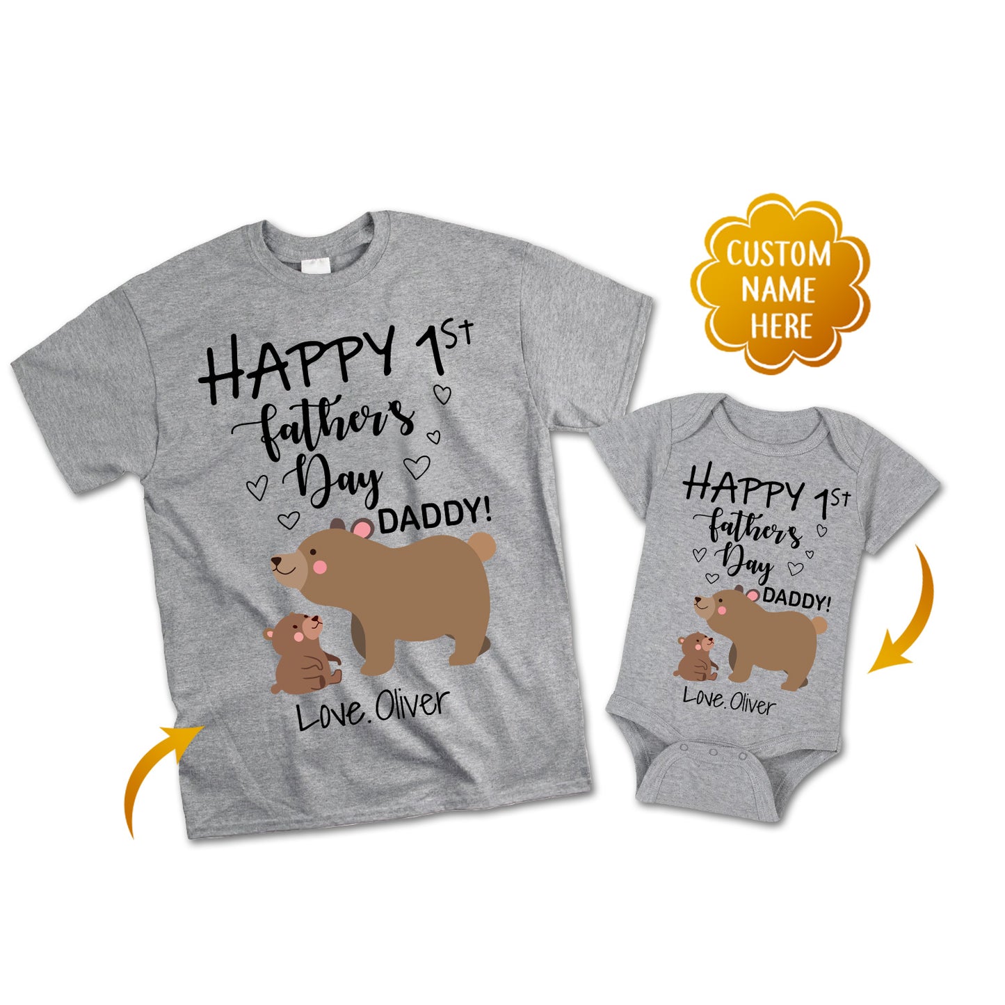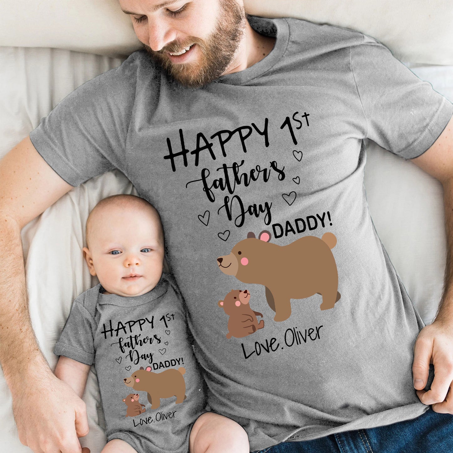 Happy 1St Fathers Day 2022 Daddy And Baby Bear Custom Matching Outfit