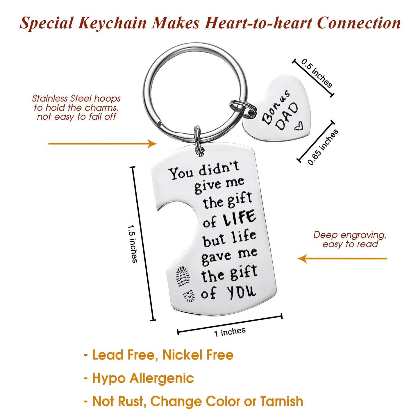 STEPDAD KEYCHAIN: Keychains are small but sweet gestures of affection for your bonus dad. With it's high usability, you can always remind him of your love and appreciation for him.