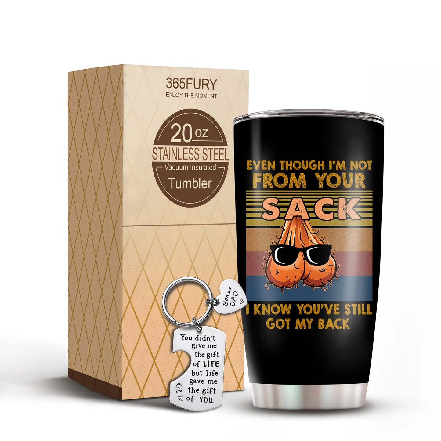 Life Gave Me The Gift Of You Bonus Dad Funny Tumbler & Keychain Set