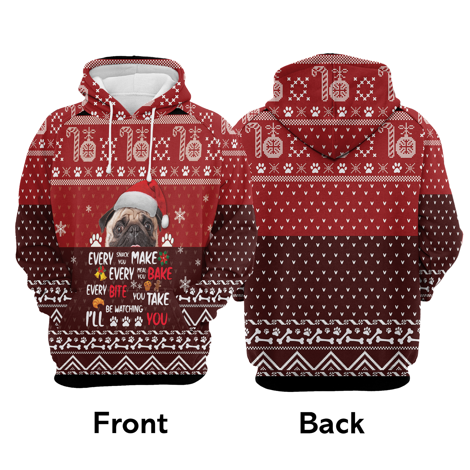 Pug Will Be Watching You All Over Print Unisex Hoodie