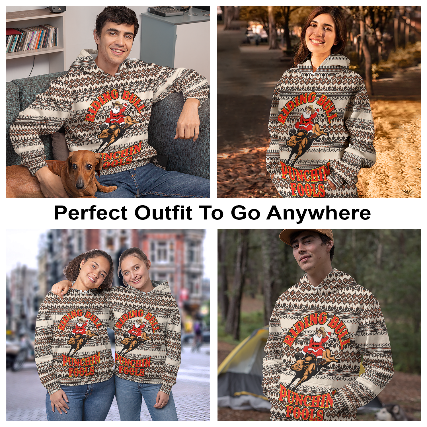 Riding Bulls Punchin Fools All Over Print Unisex Hoodie