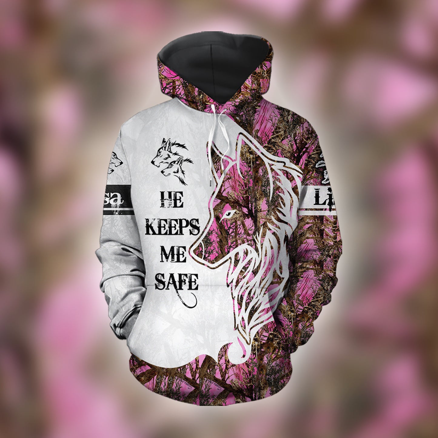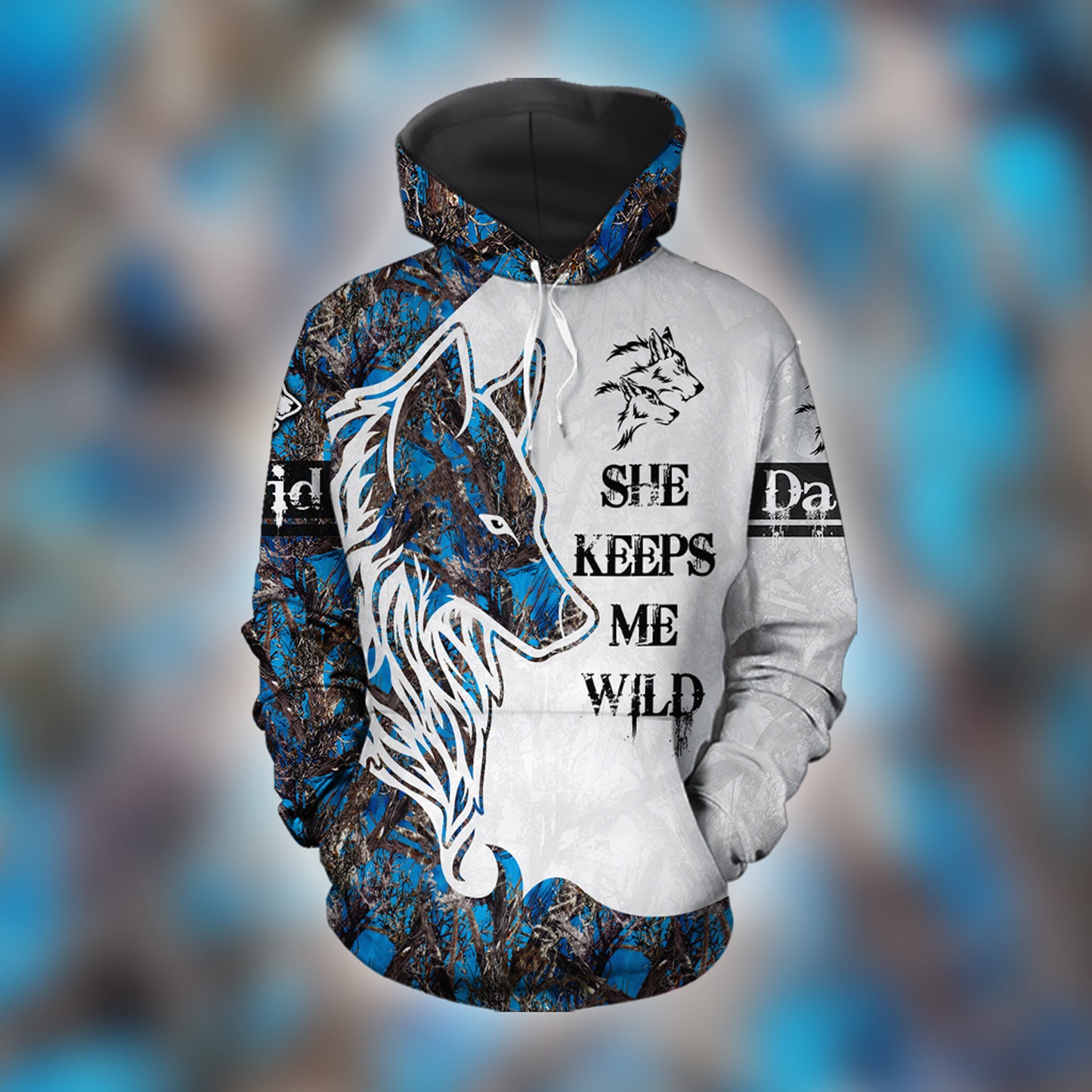 She Keeps Me Wild He Keeps Me Safe Wolf Couple All Over Print Valentine Gift Couple Matching 3D Hoodie Personalizedwitch For Wolf Lovers