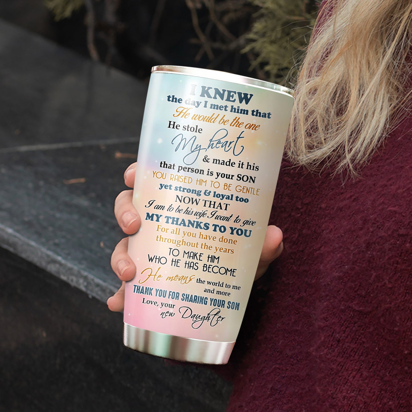 MEANINGFUL GIFT FOR FUTURE MOTHER IN LAW: Choosing a special, unique and touching gift to surprise and thank your future mother in law, this tumbler is a perfect choice for daughter in law in direction to give the mother in law as a gift, whether it comes to mothers day gift for mother in law, birthday gift, Christmas Gift, thank you gift or other special occasions, this beautiful drink tumbler will be sure to tug at any mom heartstrings.