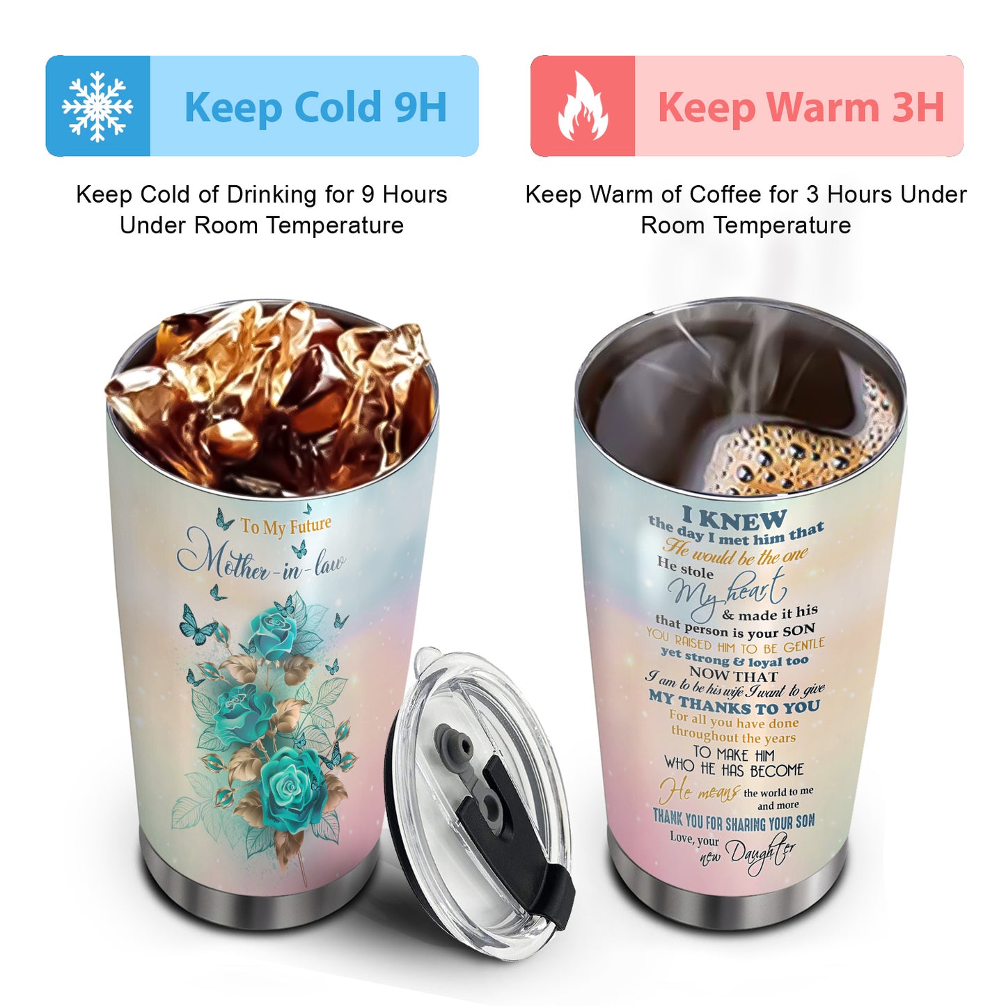 Practical Novel Gift: To My Mother in law Tumbler - the handy design makes it portable easily. The meaningful quotes will melt her heart. Let her enjoy her favorite drink at taking all the fun activities such as road trips, BBQ parties, hiking or fishing trip, etc.