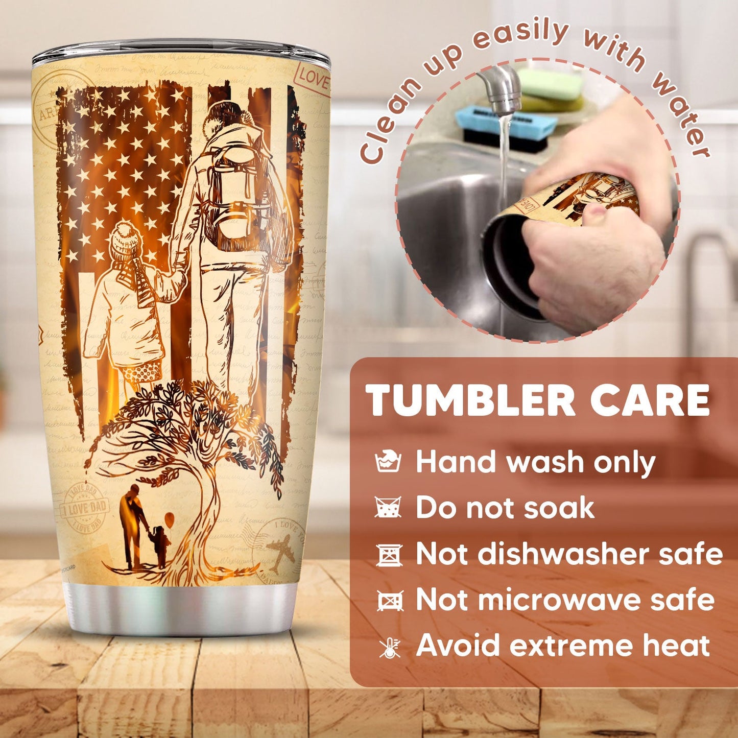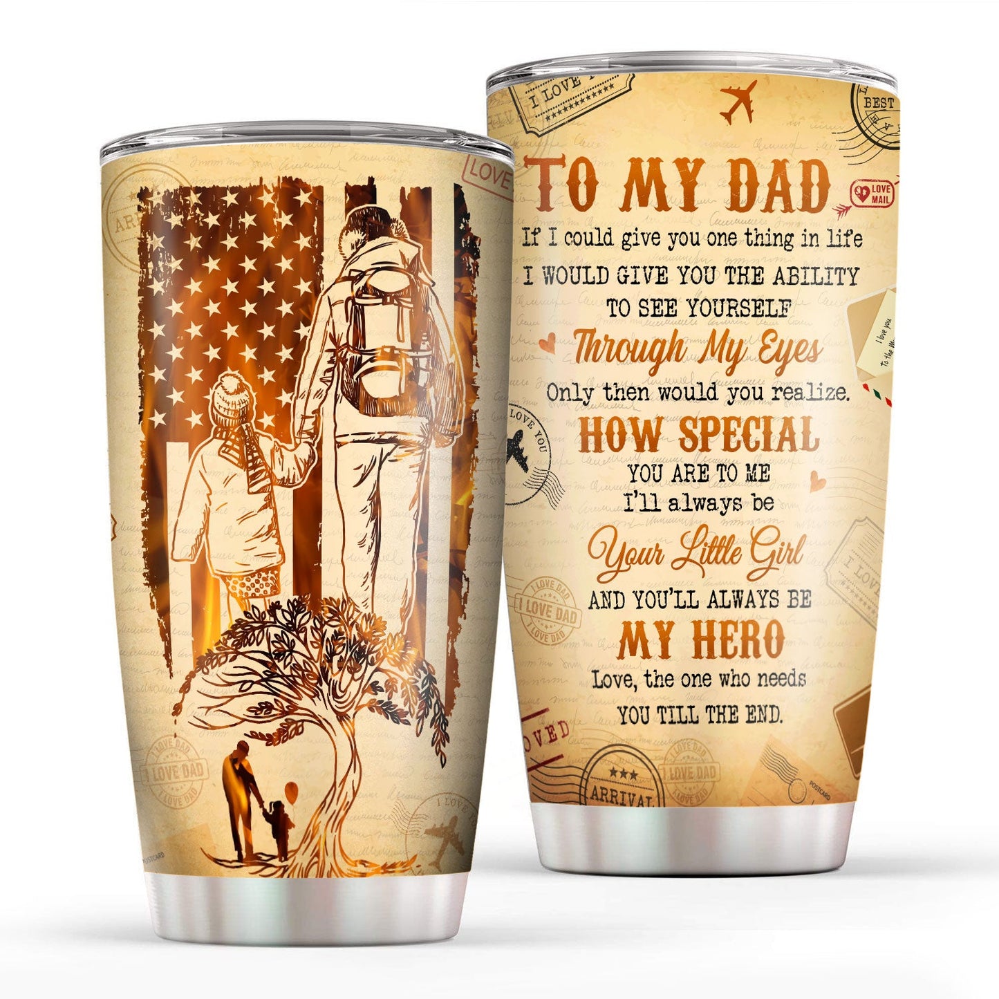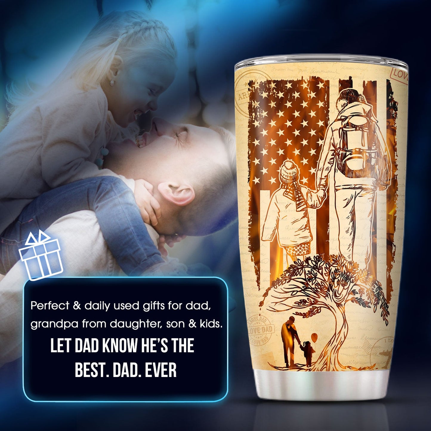 MEANINGFUL DESIGNS: The To My Dad tumble is beautifully designed, with the heartwarming picture of dad and daughter holding hands. The flag showing the pride of being an American Dad.