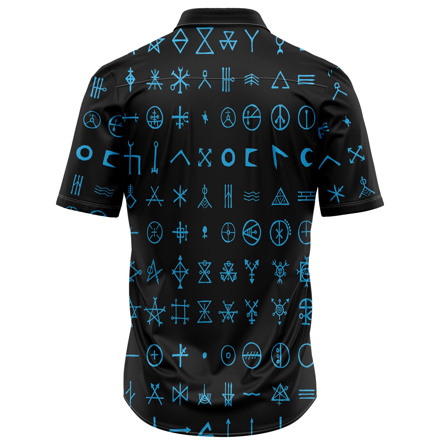 - Spread collar, Short sleeves, Front button closure