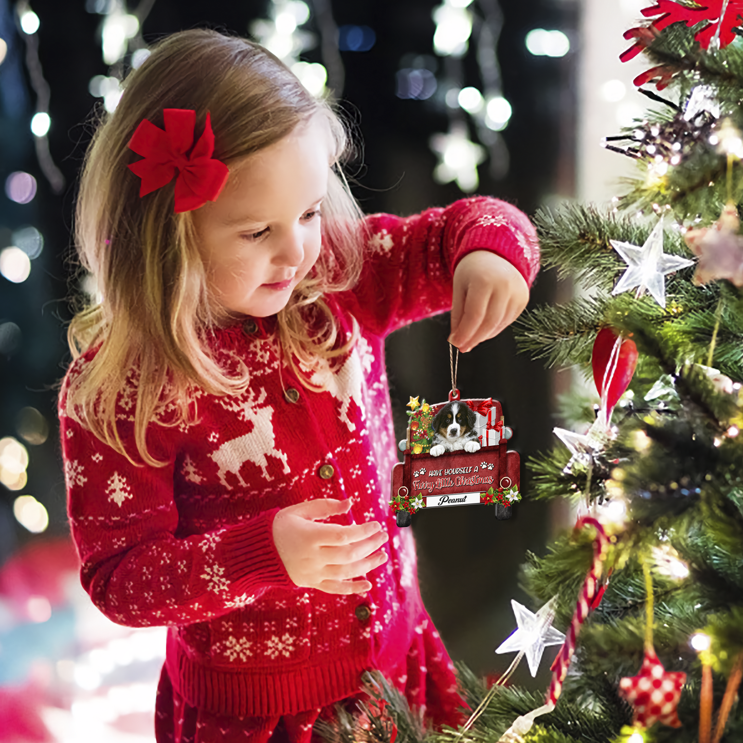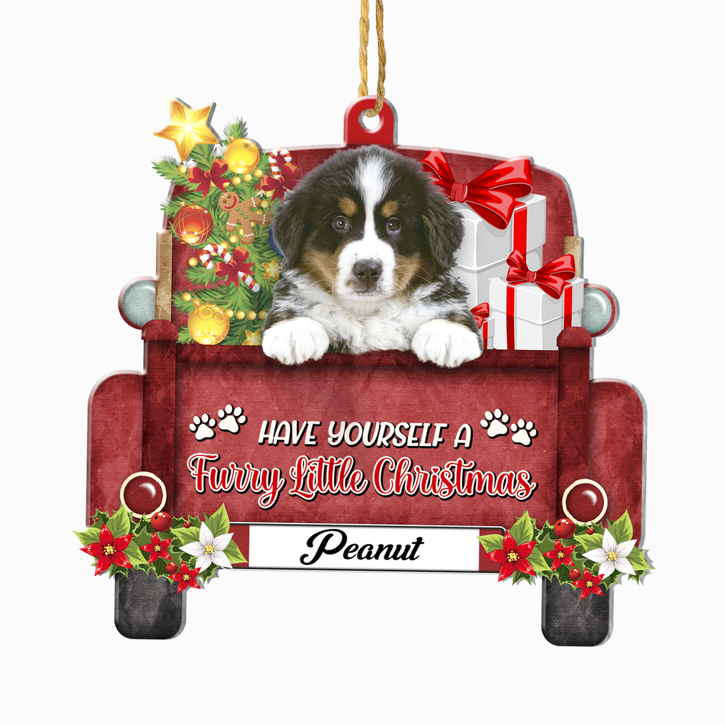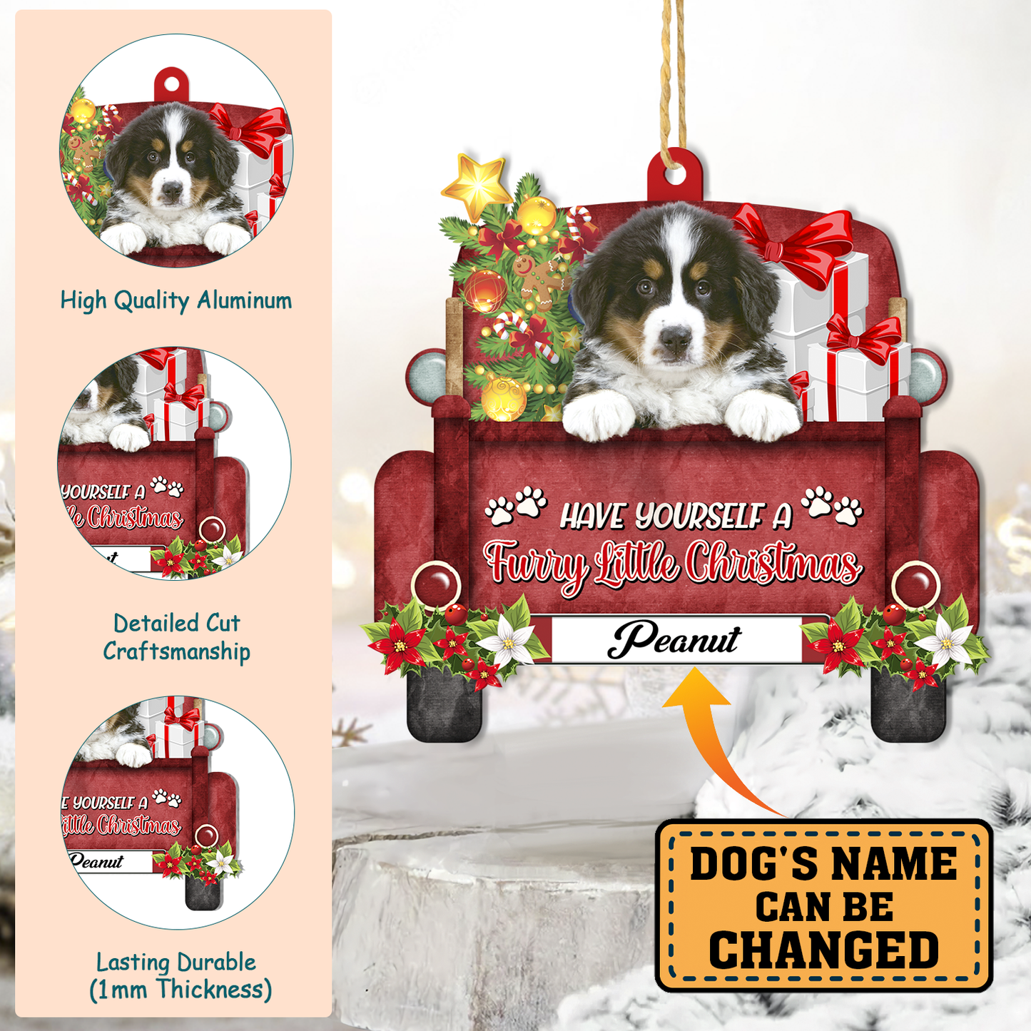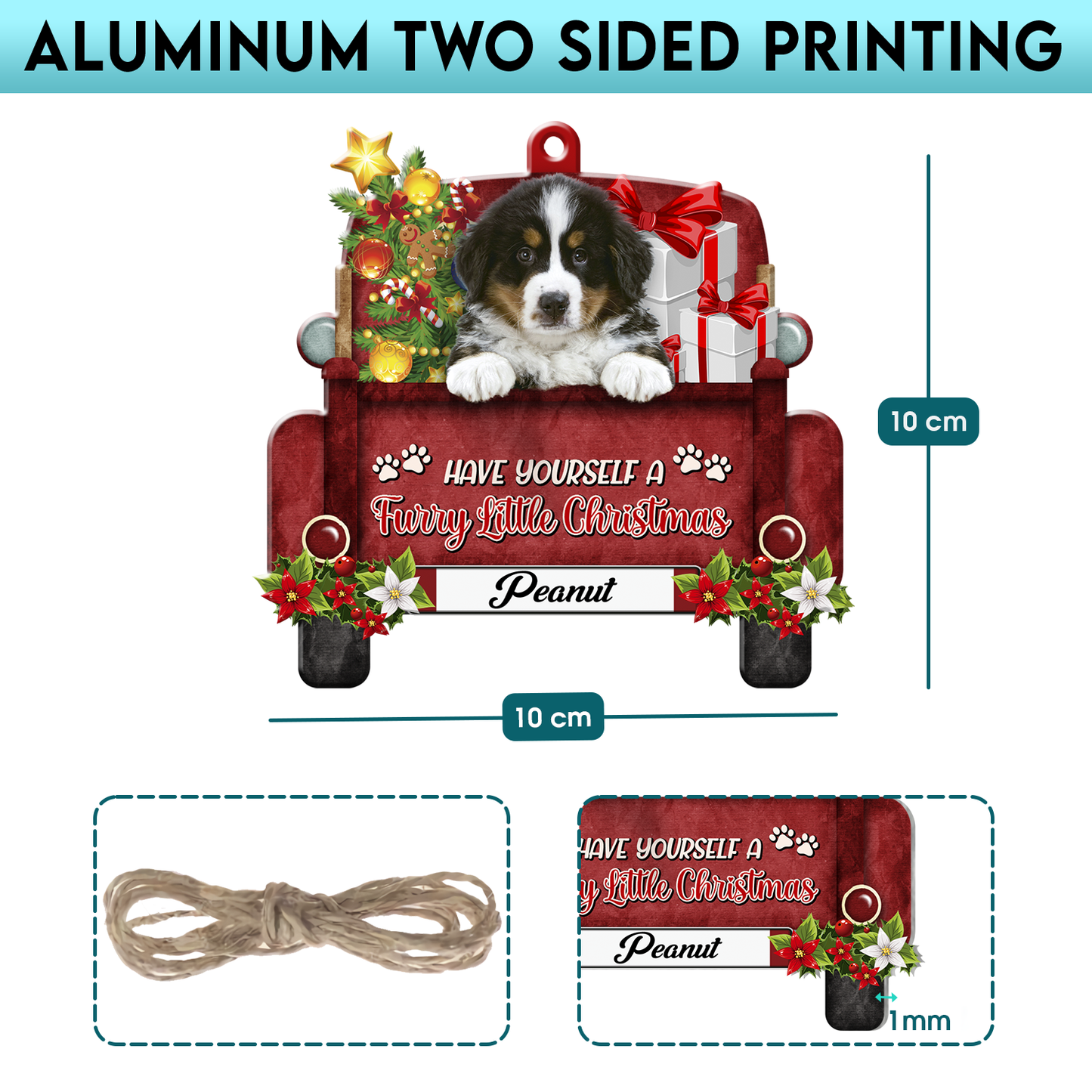 Personalized Bernese Mountain Red Truck Christmas Aluminum Ornament