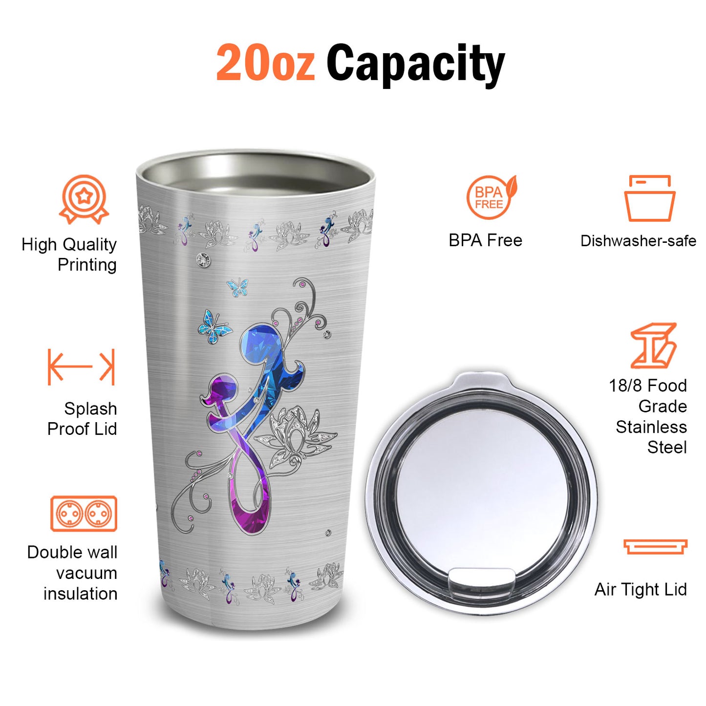 PREMIUM MATERIAL: The cup body is made from 18/8 stainless steel, so this tumbler is durable, unbreakable, rust-resistant, and doesn't transfer the flavor of your drinks. The BPA-free clear lid that seals the cup tightly keeps spills under control and allows you to see inside.