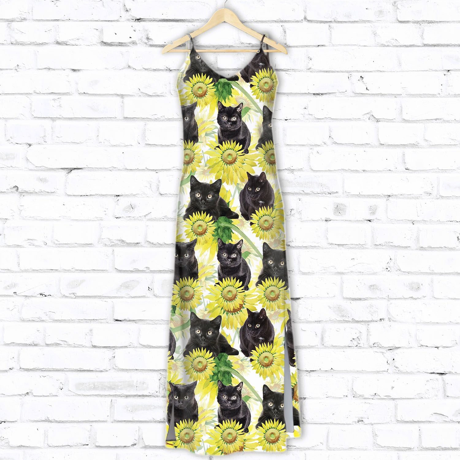 Black Cat and Sunflower D1607 - Hawaiian Dress