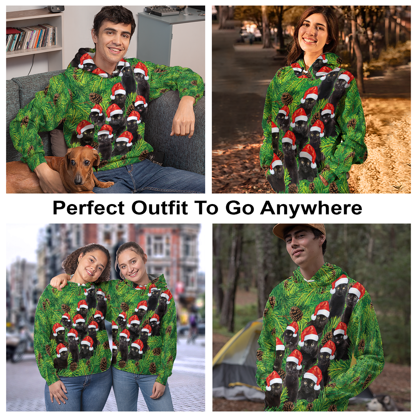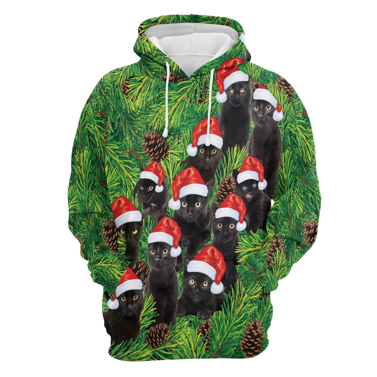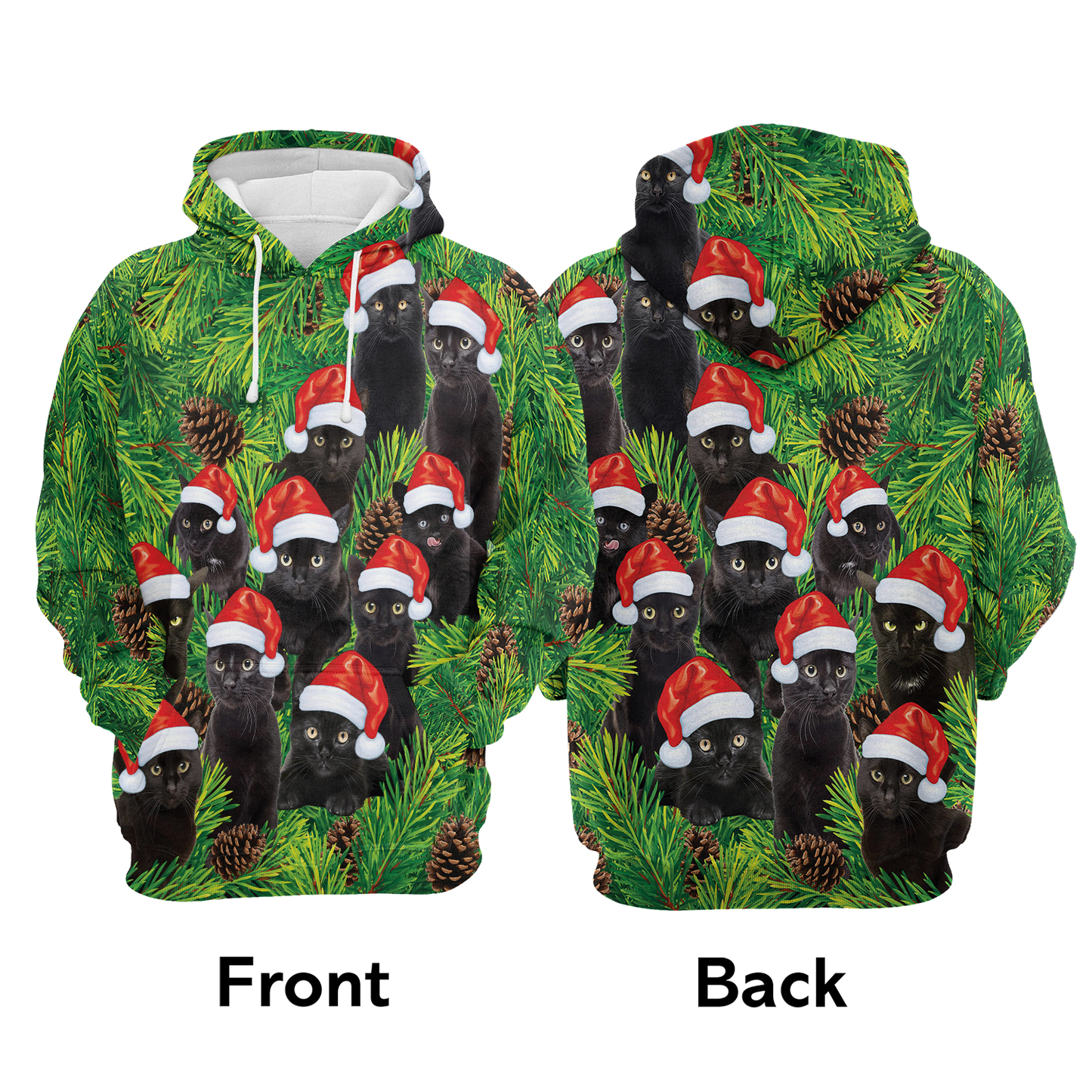 Black Cat Pine Tree All Over Print Unisex Hoodie