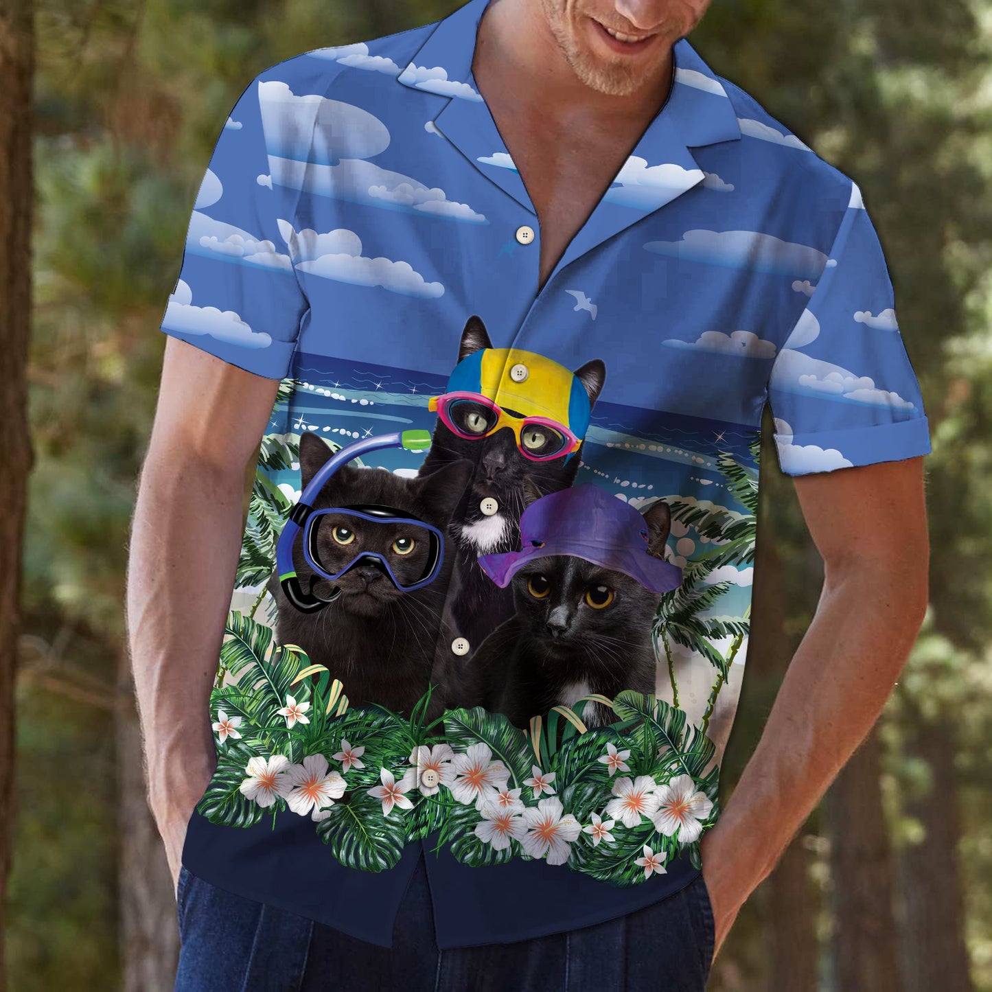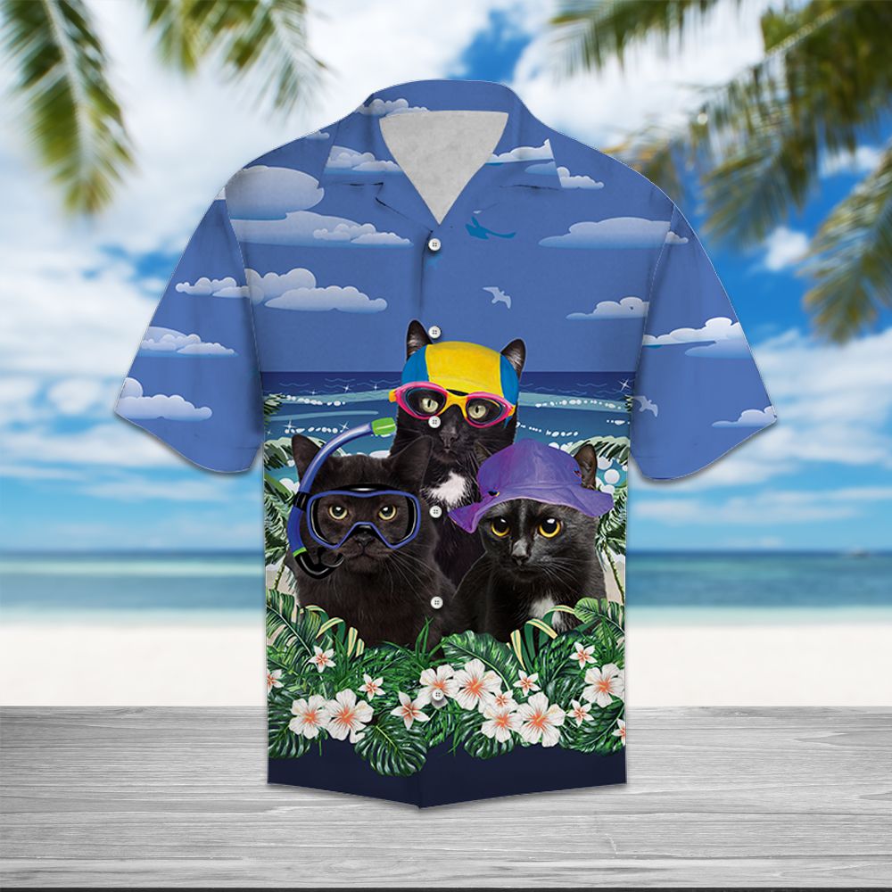 Black Cat Summer Beach T0707 - Hawaii Shirt