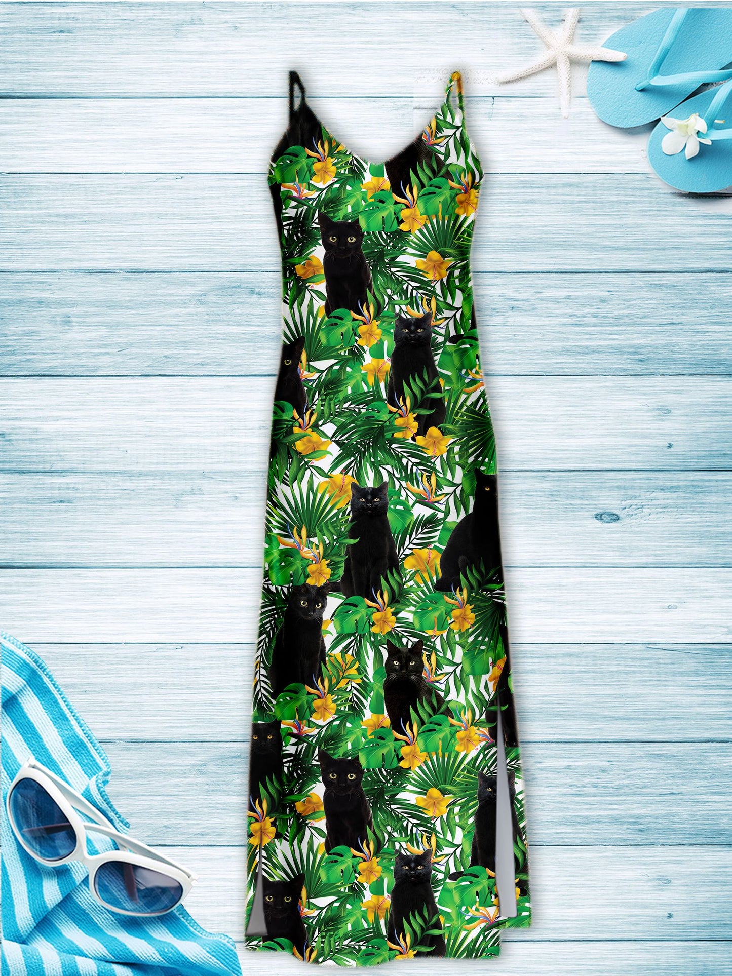 Hawaiian Black Cat Tropical Wild Flowers T1507 - Hawaii Dress