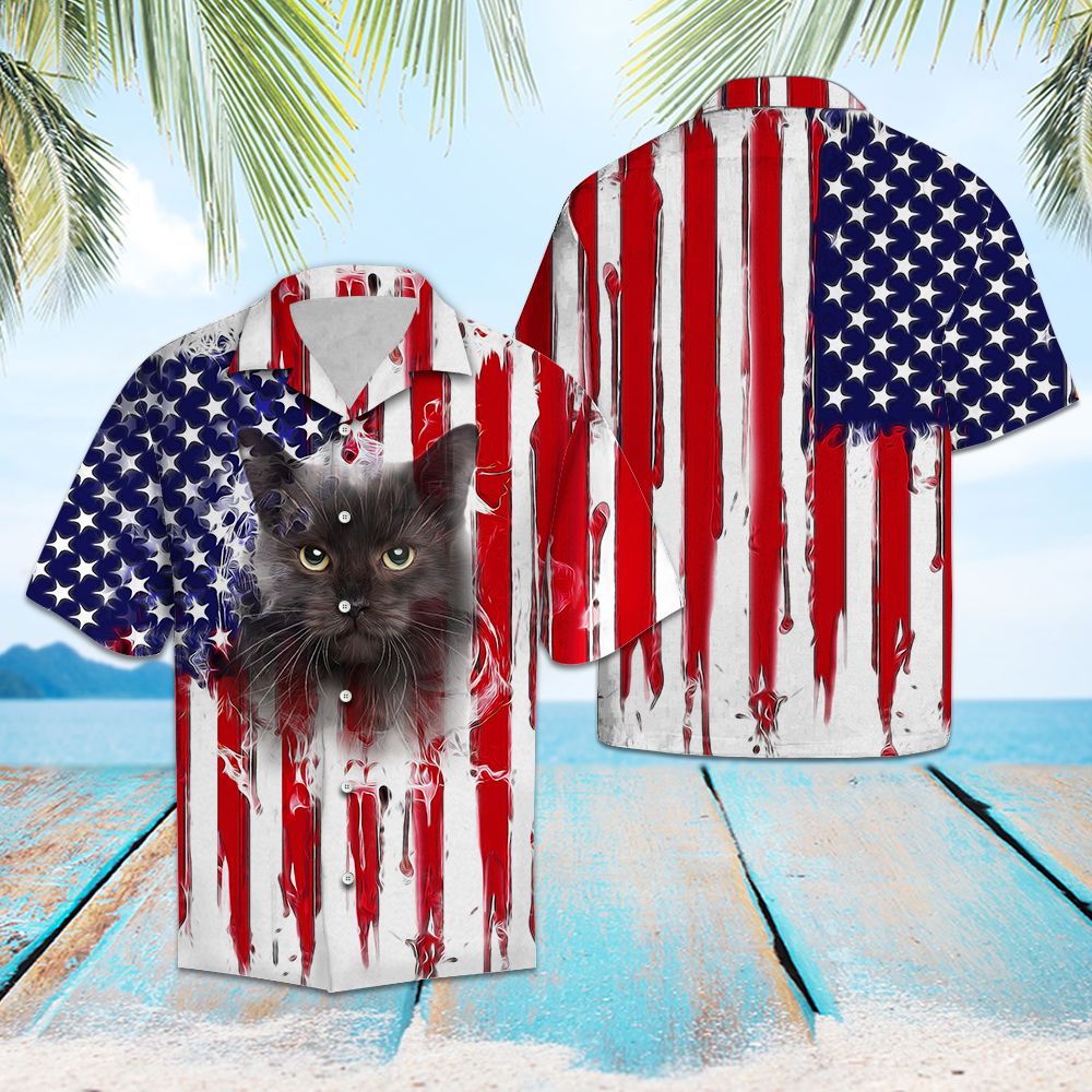 Black Cat US Flag Pattern G5703 - Hawaii Shirt
