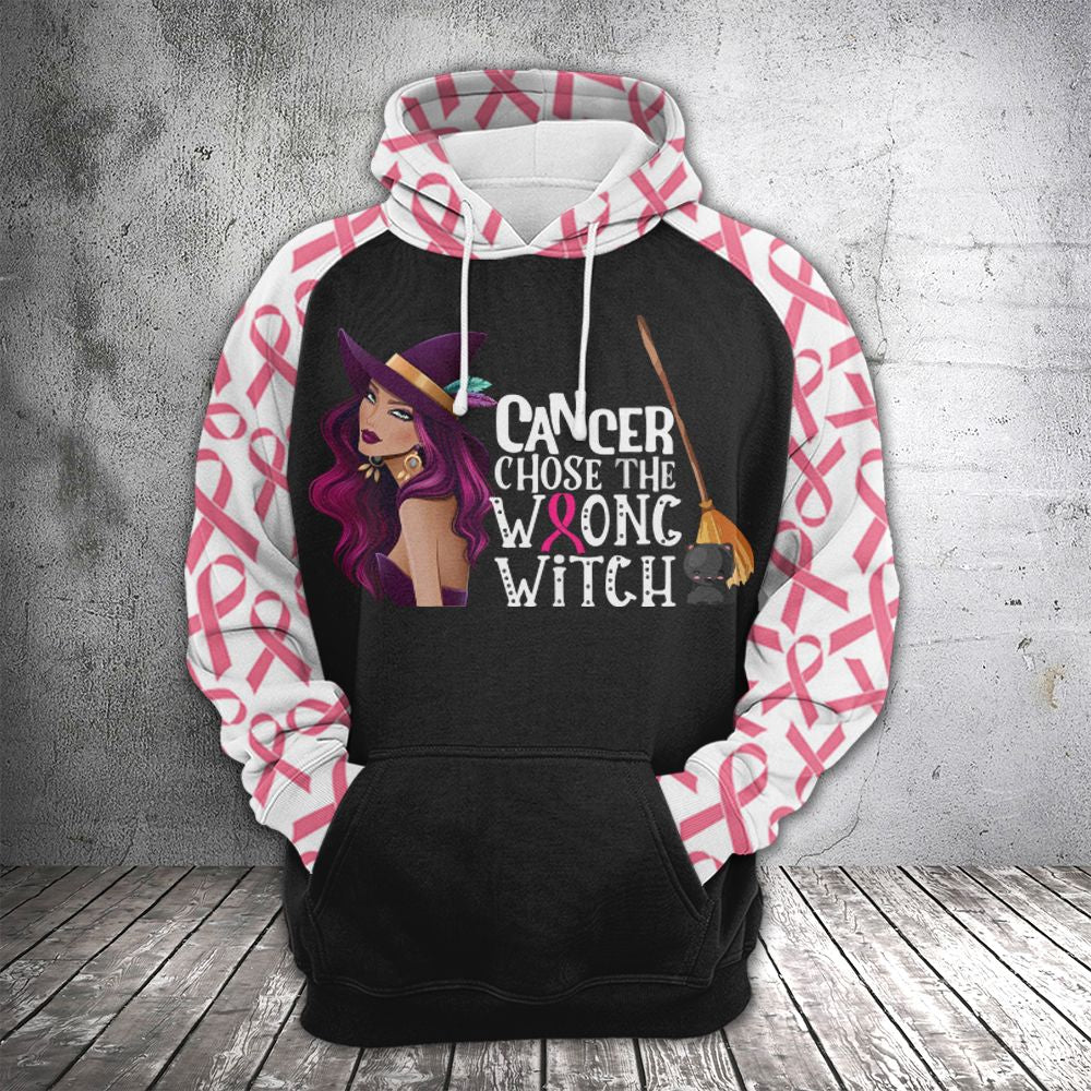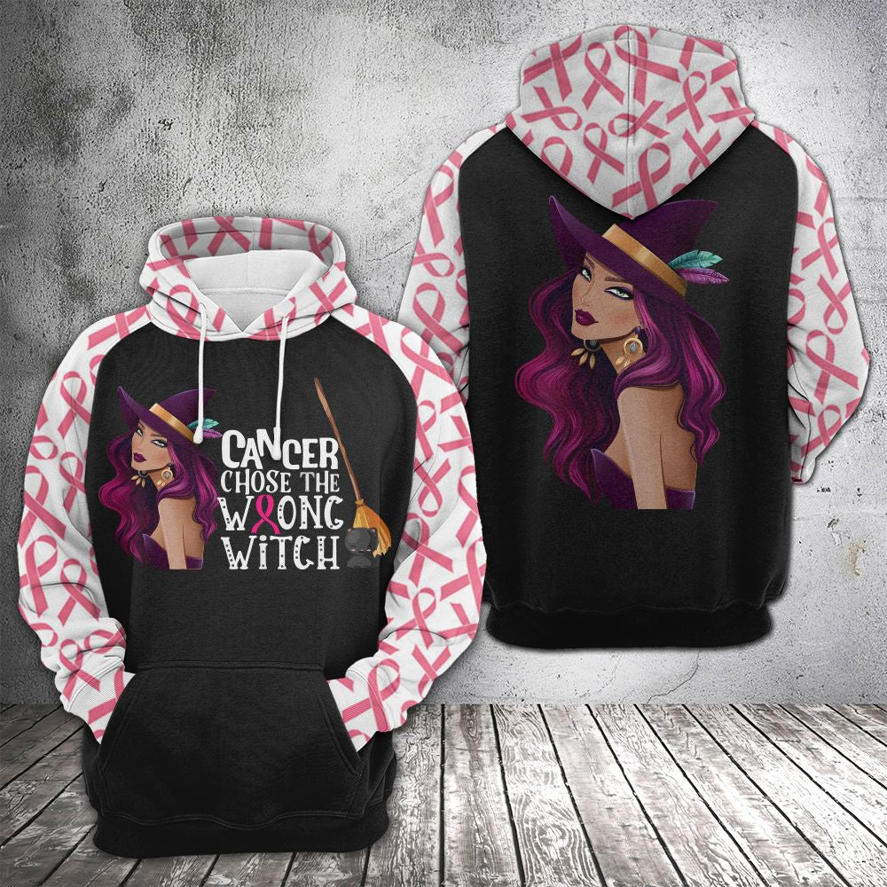 Breast Cancer Chose The Wrong Witch HT04901 - All Over Print Unisex Hoodie
