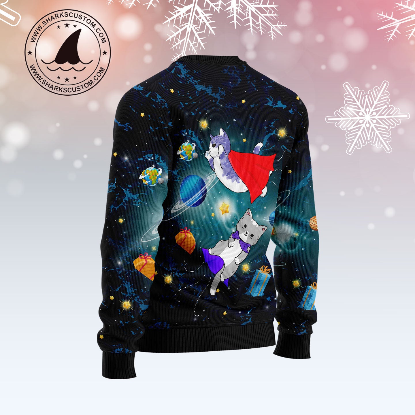 Cat Galaxy TY2411 unisex womens & mens, couples matching, friends, funny family ugly christmas holiday sweater gifts (plus size available)