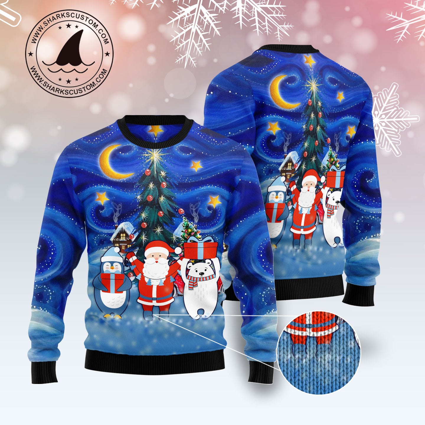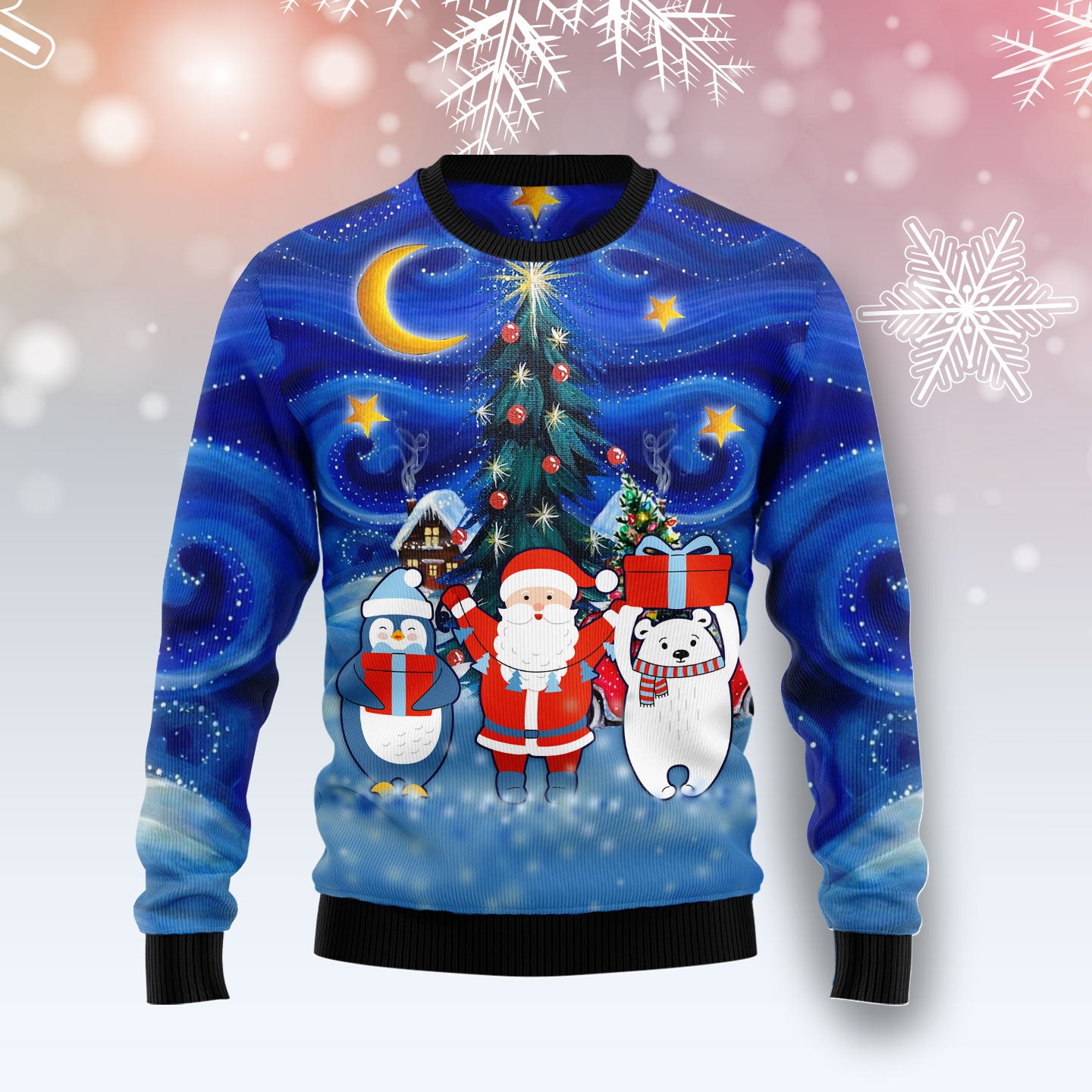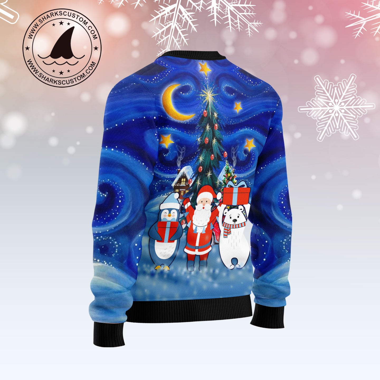 Christmas card polar bear santa penguin HZ113001 unisex womens & mens, couples matching, friends, funny family ugly christmas holiday sweater gifts (plus size available)