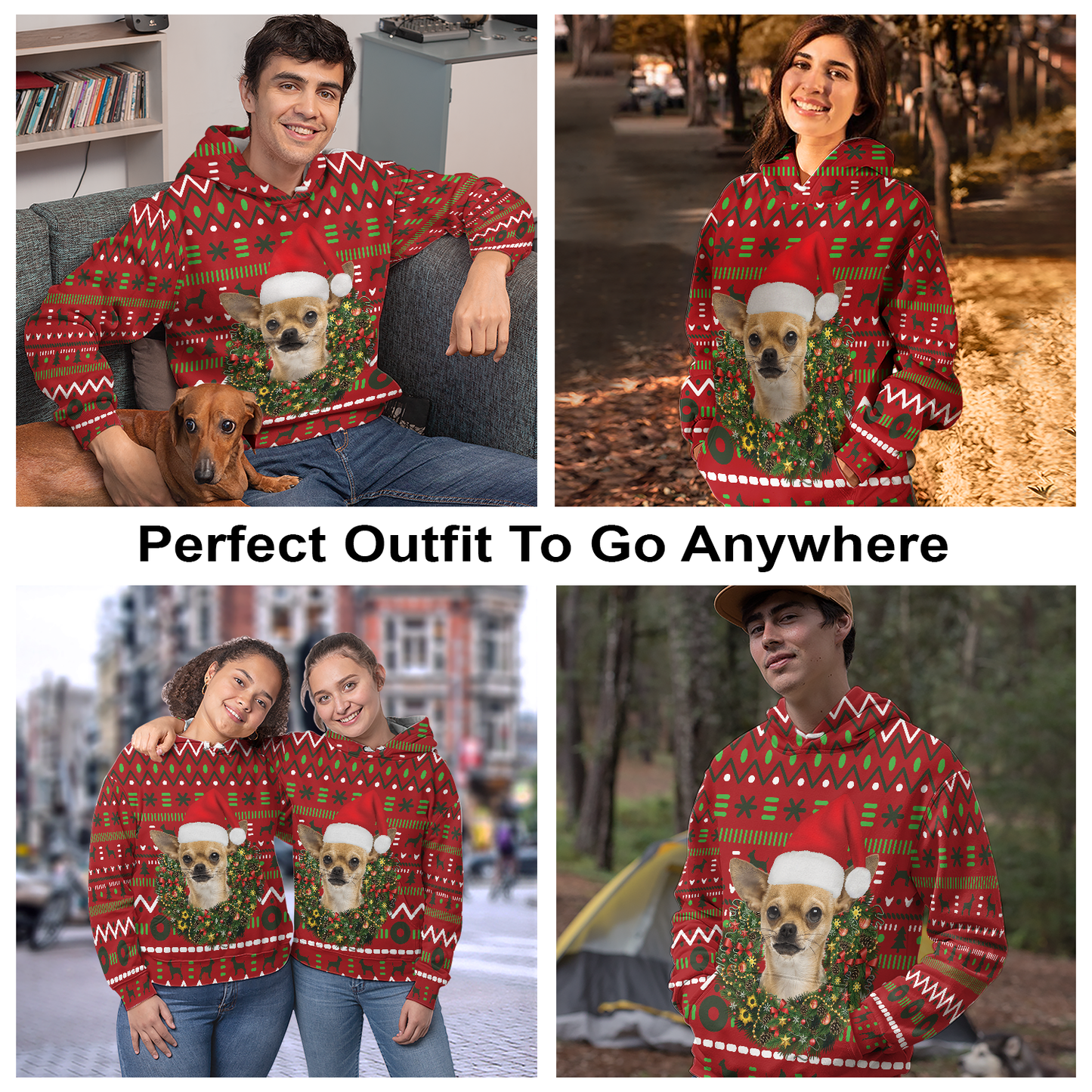 Chihuahua Merry Christmas All Over Print Unisex Hoodie