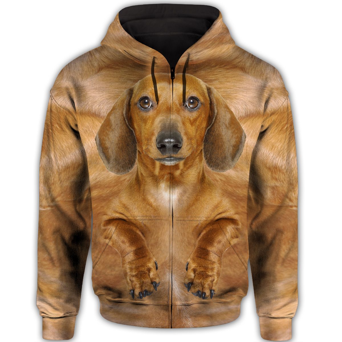 Dachshund Cute Dog Face T284 - All Over Print Zip Hoodie unisex womens & mens, couples matching, friends, funny family christmas holiday zip hoodie gifts (plus size available)
