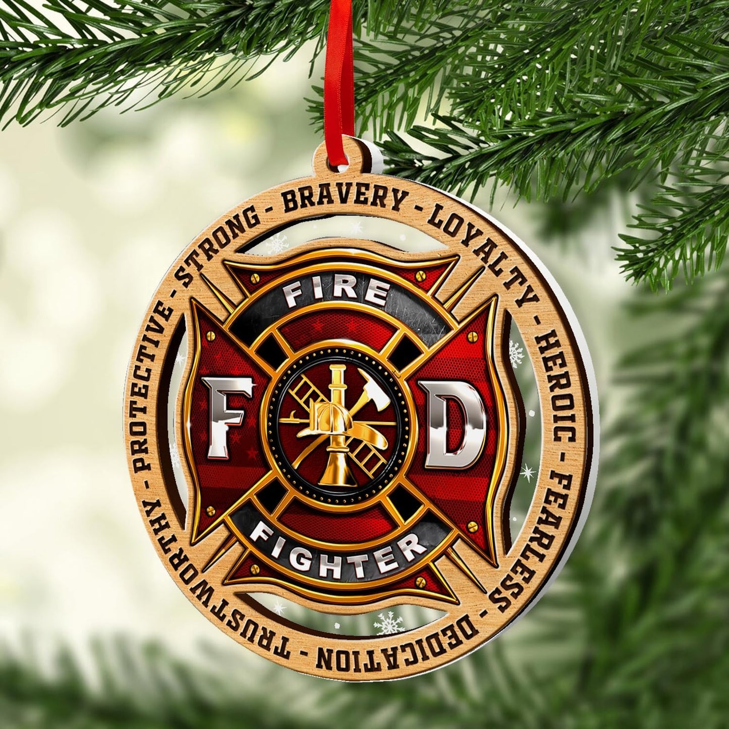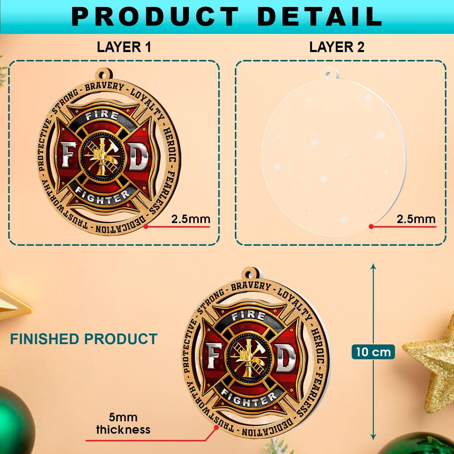 Firefighter Ornaments for Christmas Tree, Firefighter 2 Layer Wood & Acrylic Ornament Keepsake for Fireman, Paramedic EMT Fire Department Smokejumper Responder Gifts for Christmas Decor