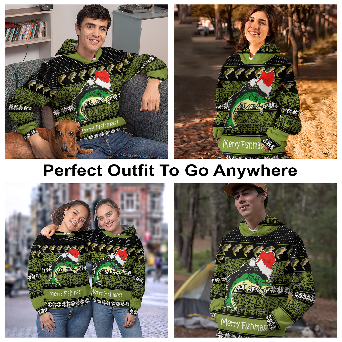 Fishing Merry Fishmas All Over Print Unisex Hoodie