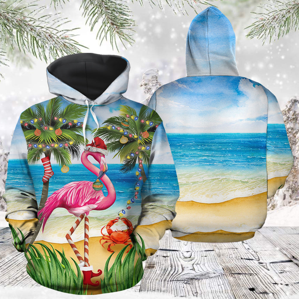Flamingo Christmas Beach T2611 unisex womens & mens, couples matching, friends, funny family sublimation 3D hoodie christmas holiday gifts (plus size available)