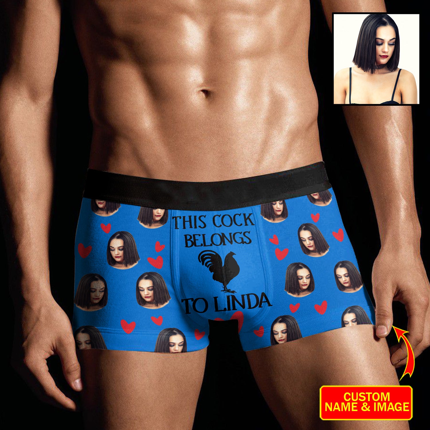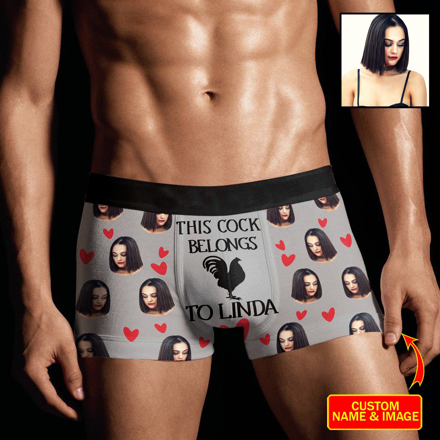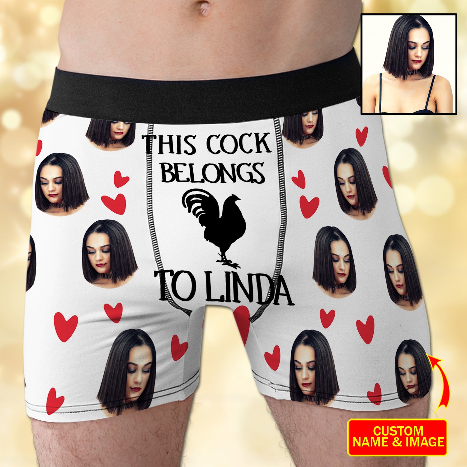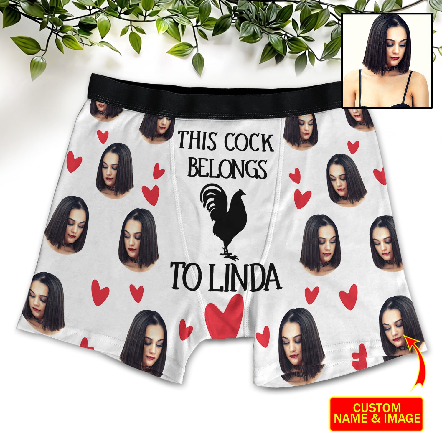 Funny Custom Face & Names This Cock Belongs To Men's Boxer Brief