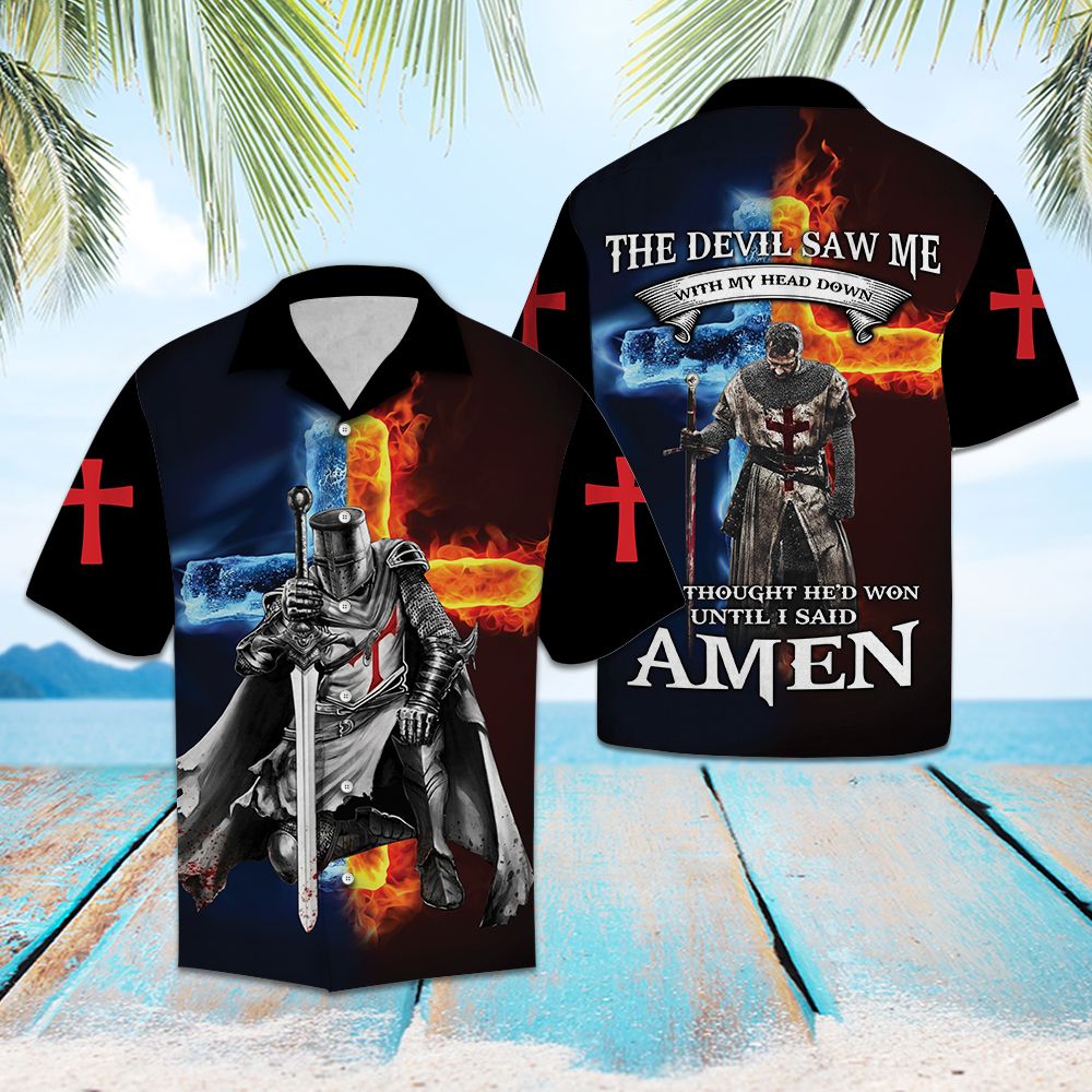 God The Devil Saw Me With My Head Down Crusader Knight G5701 - Hawaii Shirt