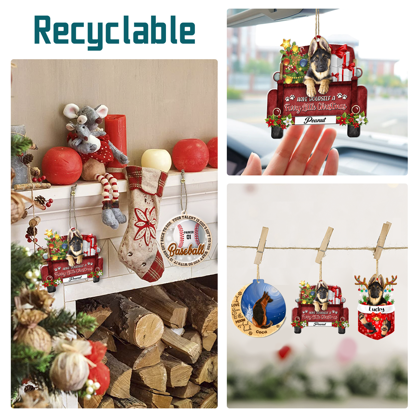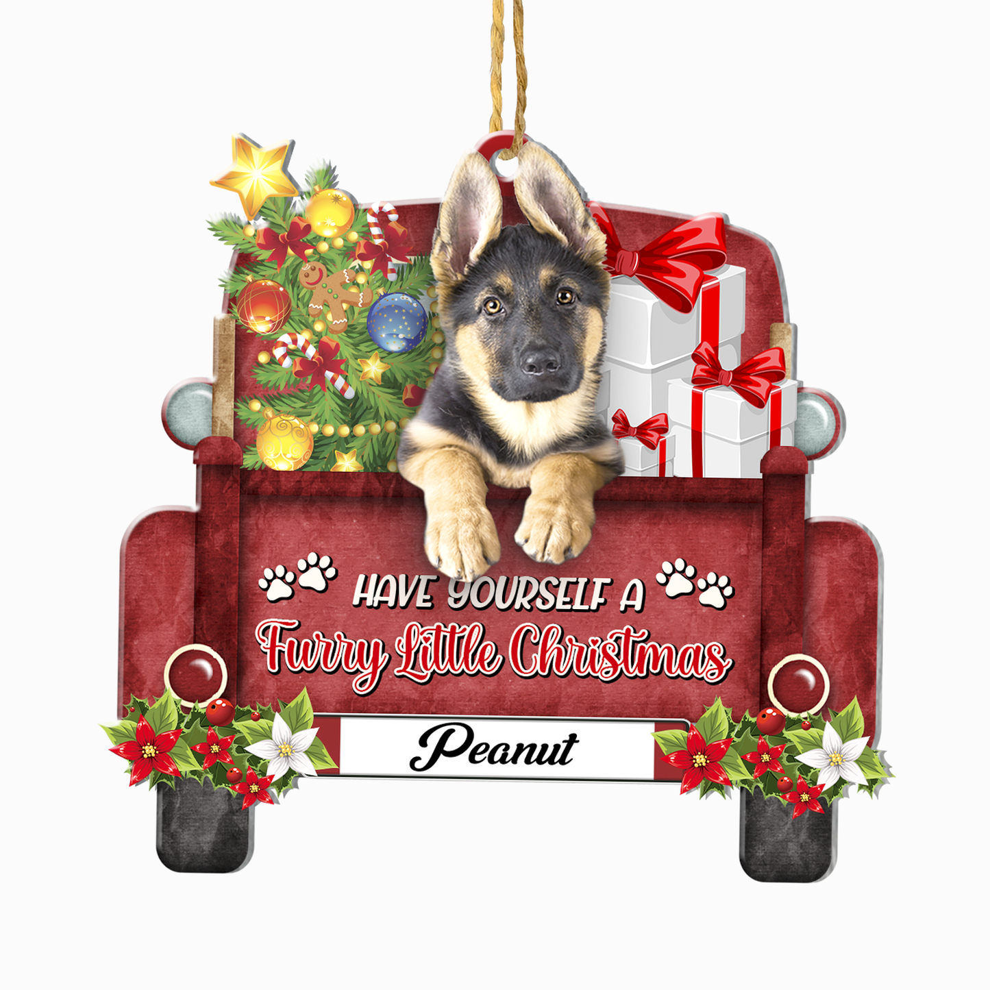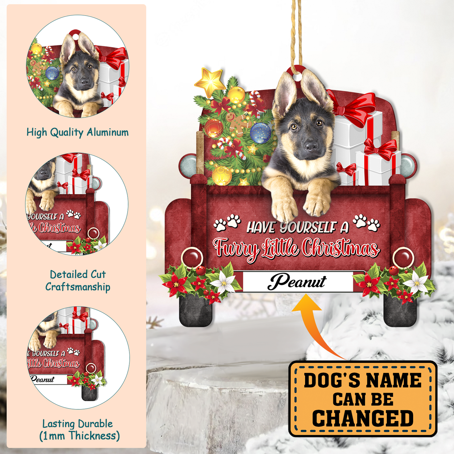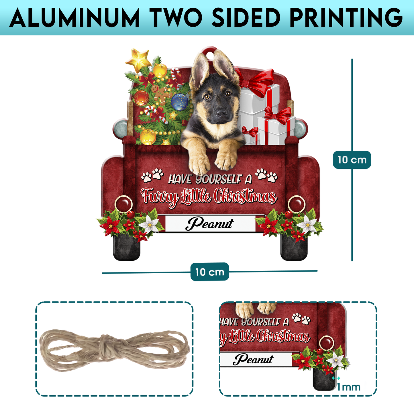 Personalized German Shepherd Red Truck Christmas Aluminum Ornament