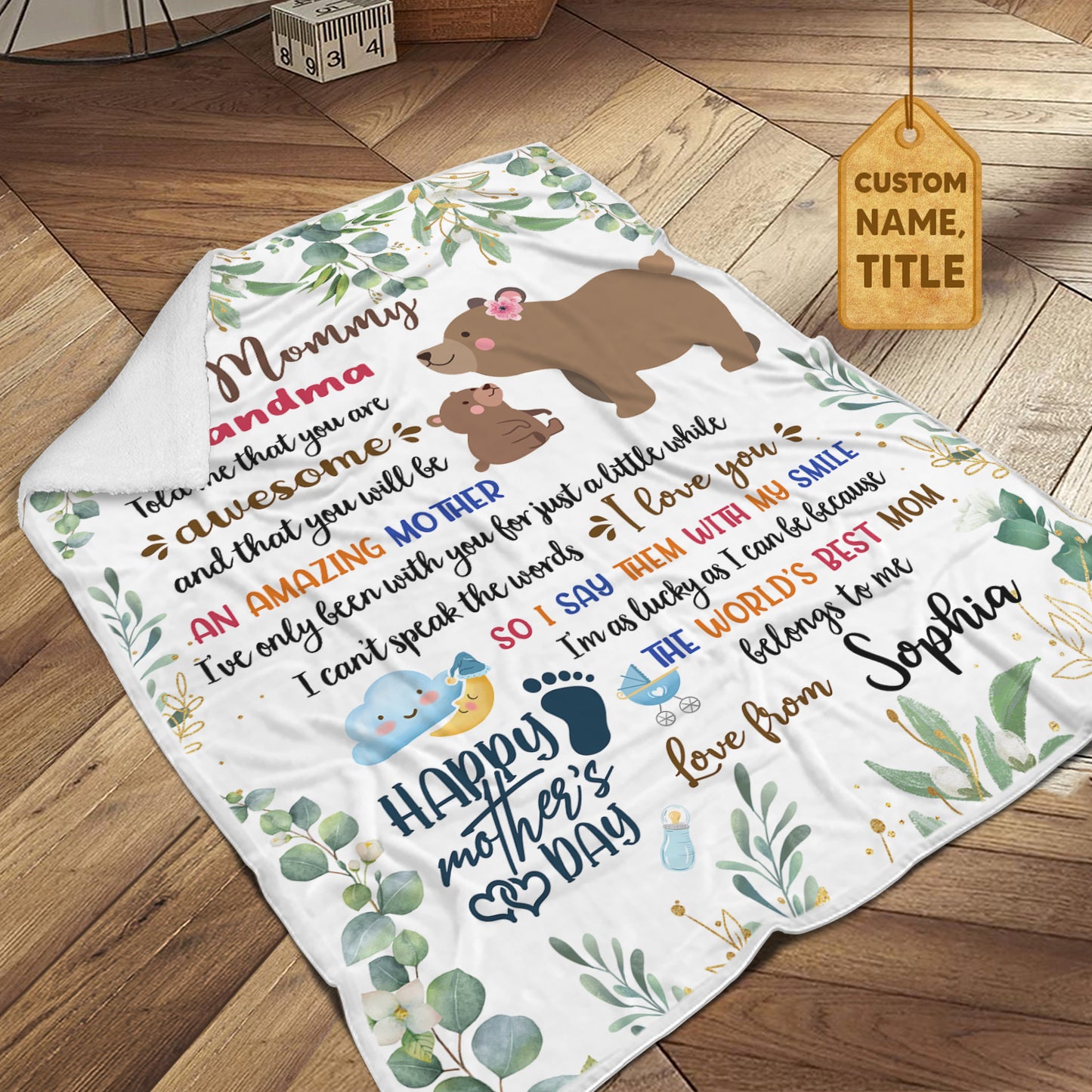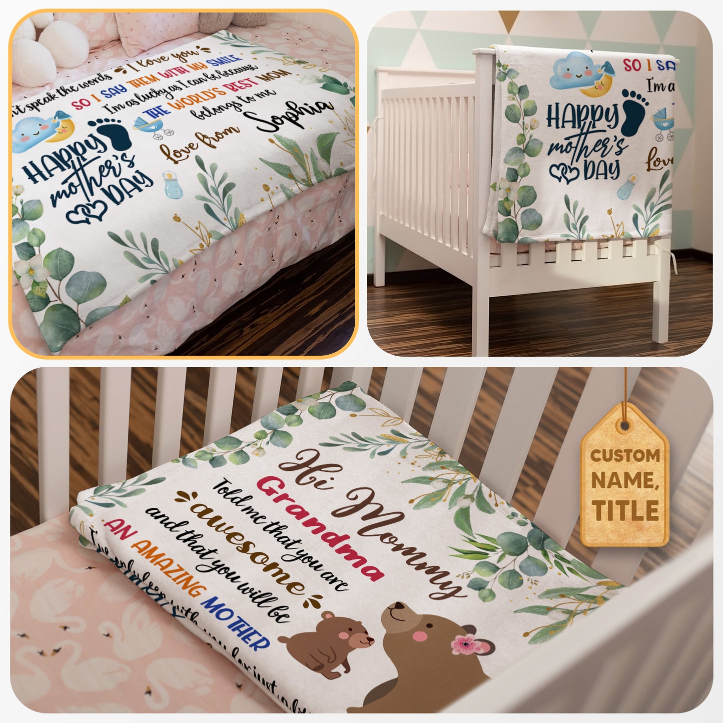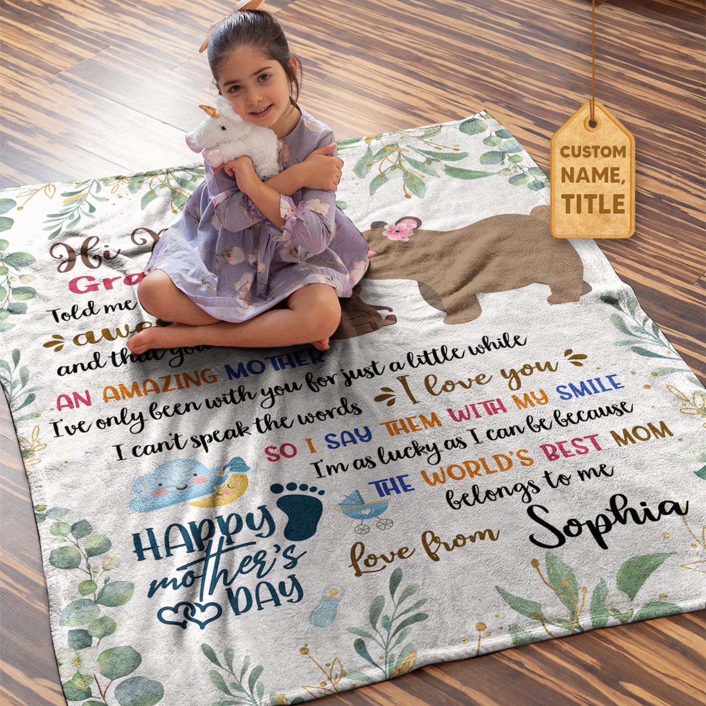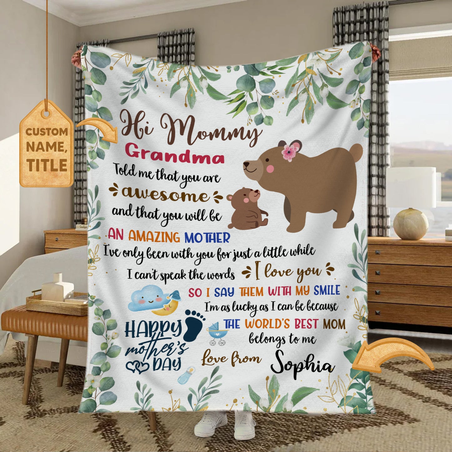 Hi Mommy Grandma Told Me Bear Personalized Fleece Blanket