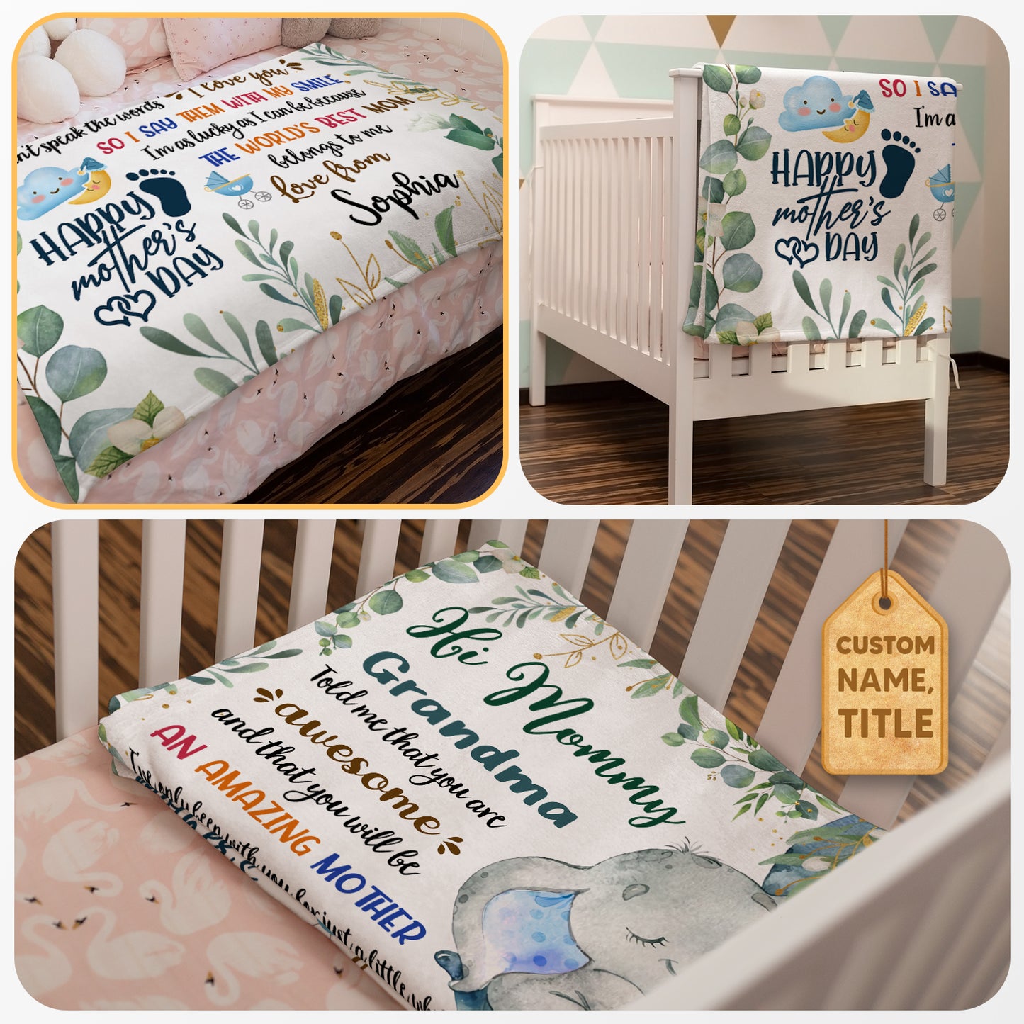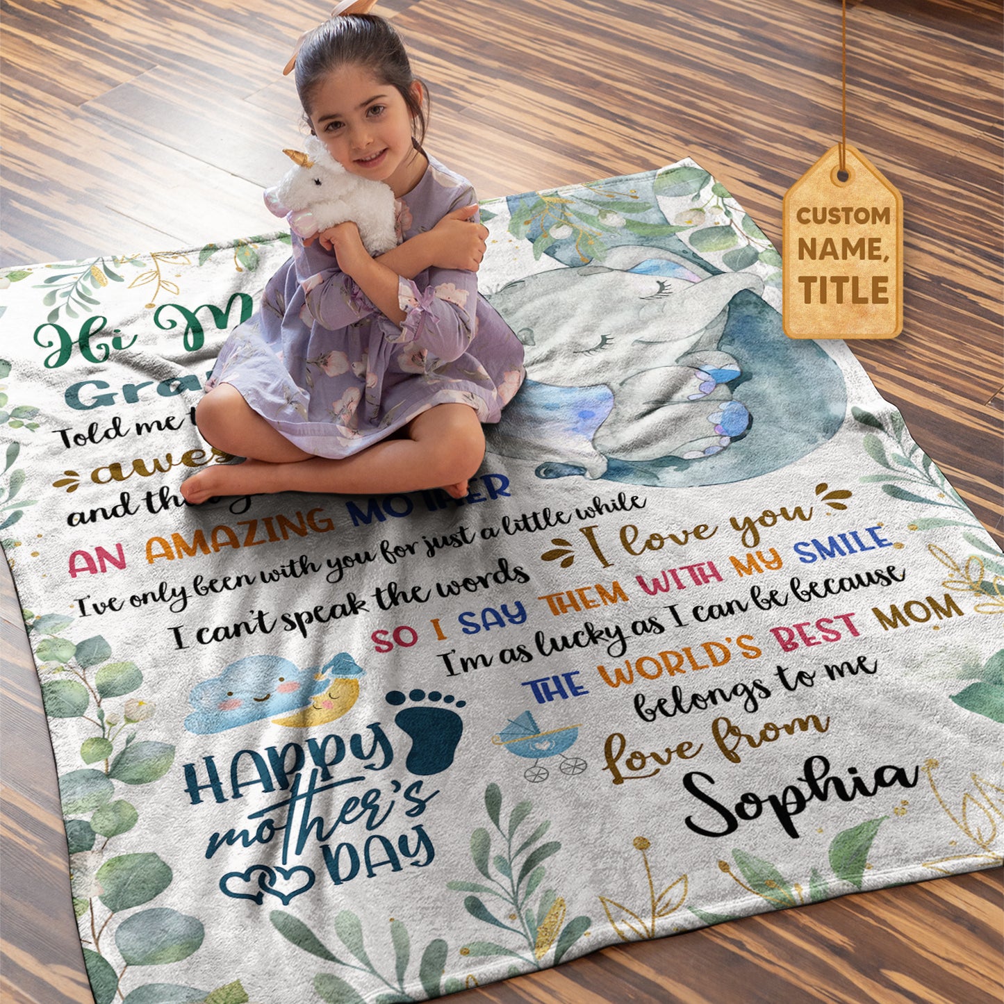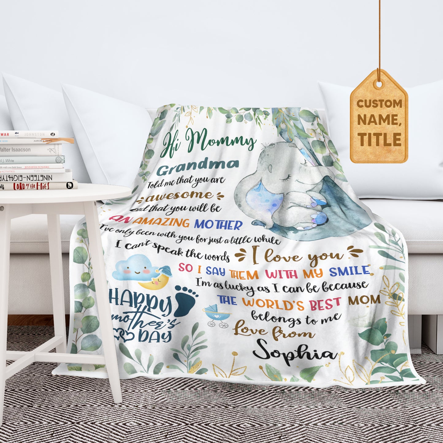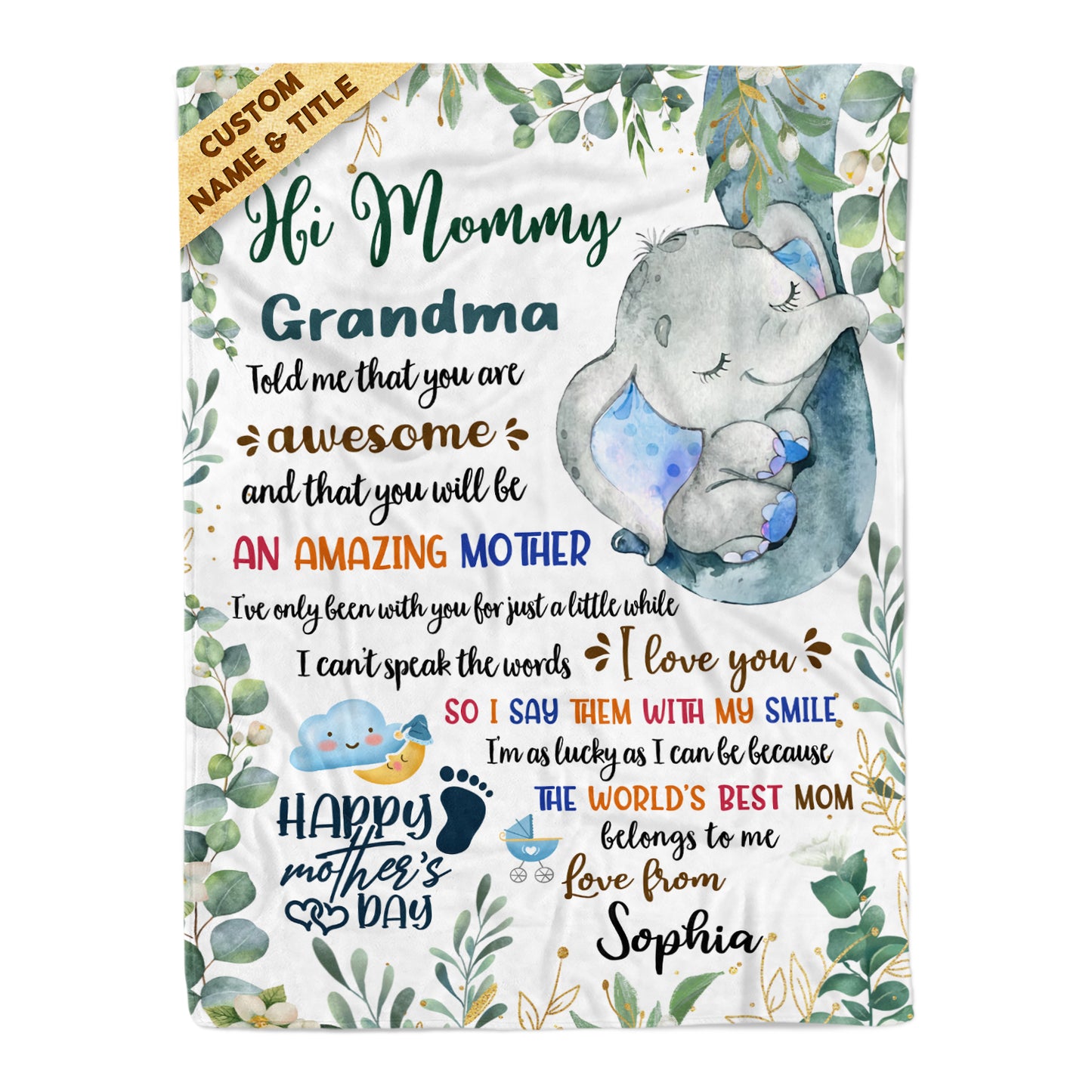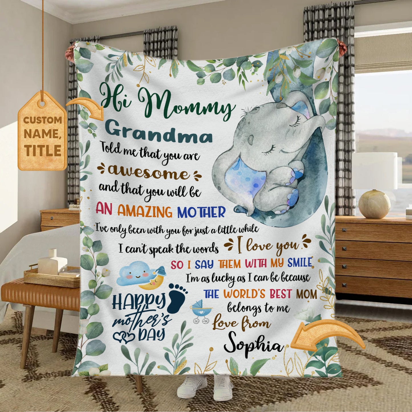 Hi Mommy Grandma Told Me Elephant Personalized Fleece Blanket