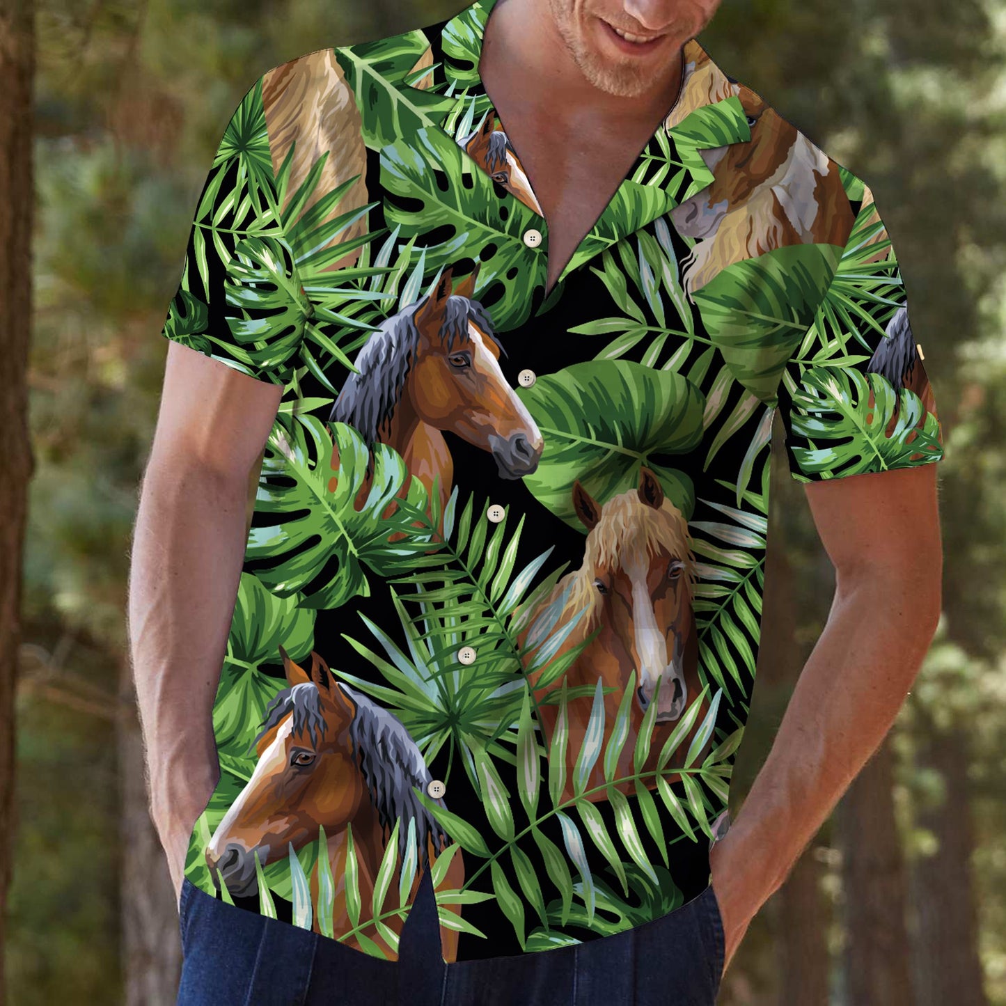Horse Green Tropical Leaves G5702 - Hawaii Shirt